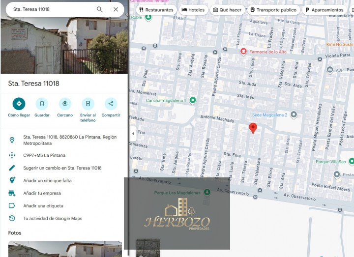 Hermosa Casa de 2 Pisos en Venta Comuna de La Pintana, con una superficie de 80 m², en una ubicación privilegiada, cerca de supermercados, colegios, a 5 min del Hospital Padre Hurtado, a pasos de la Av. Santa Rosa Paradero 30 y a 10 Min del Metro Línea 2, Estación Observatorio. • 2 dormitorios / 1 Baño. • Living, Comedor, Cocina. • 1 Estacionamiento. • Amplio Antejardín y patio trasero. Precio de Venta $55.000.000 ¡Conversable! Se acepta compra Al Contado o Crédito Hipotecario. NO SUBSIDIO / NO LEASING Propiedad sin Deudas sin Hipoteca. Herbozo Propiedades