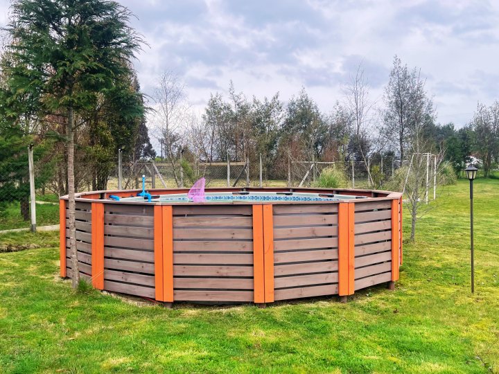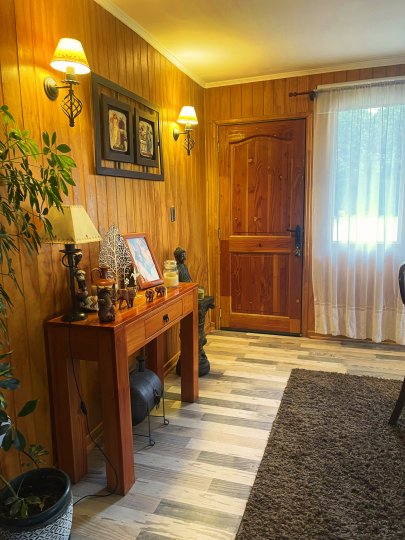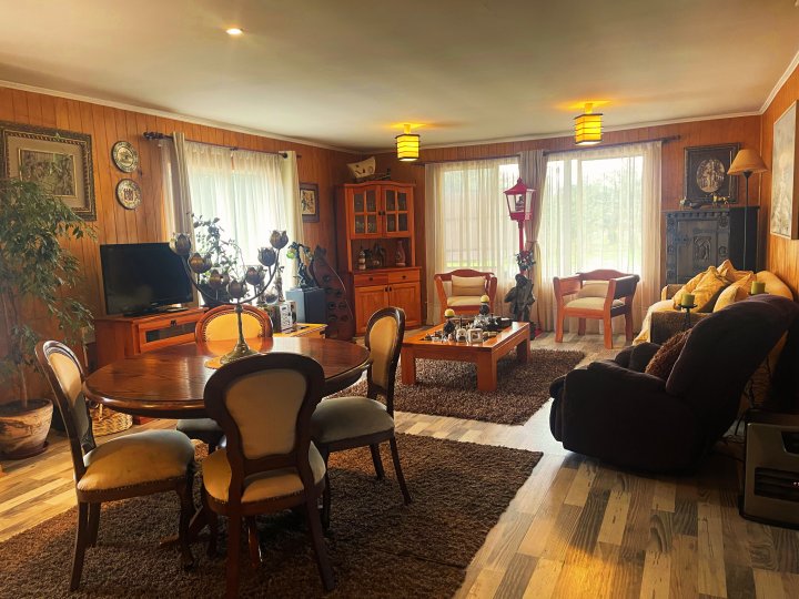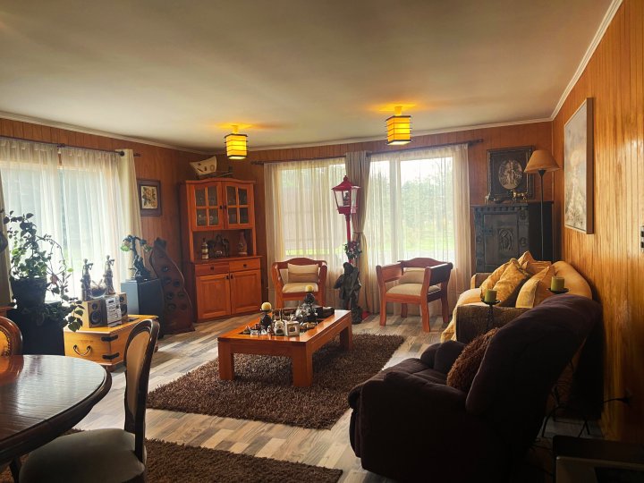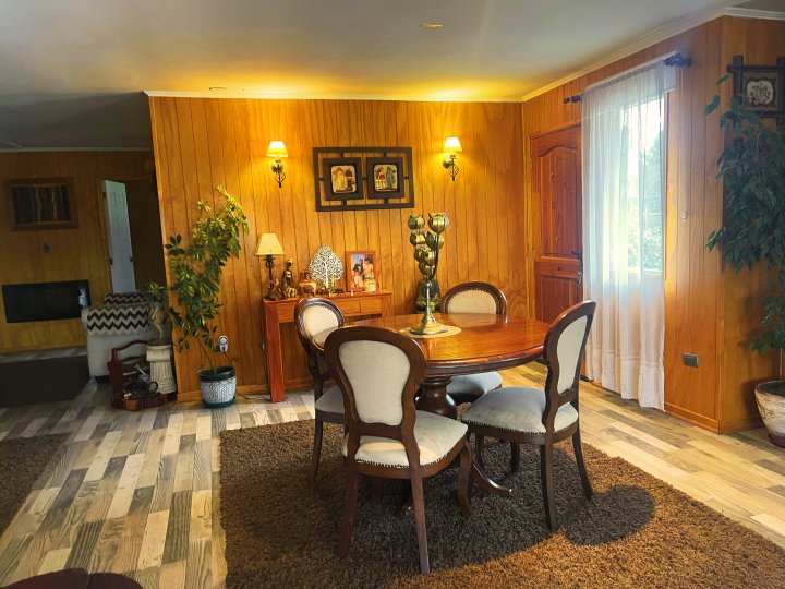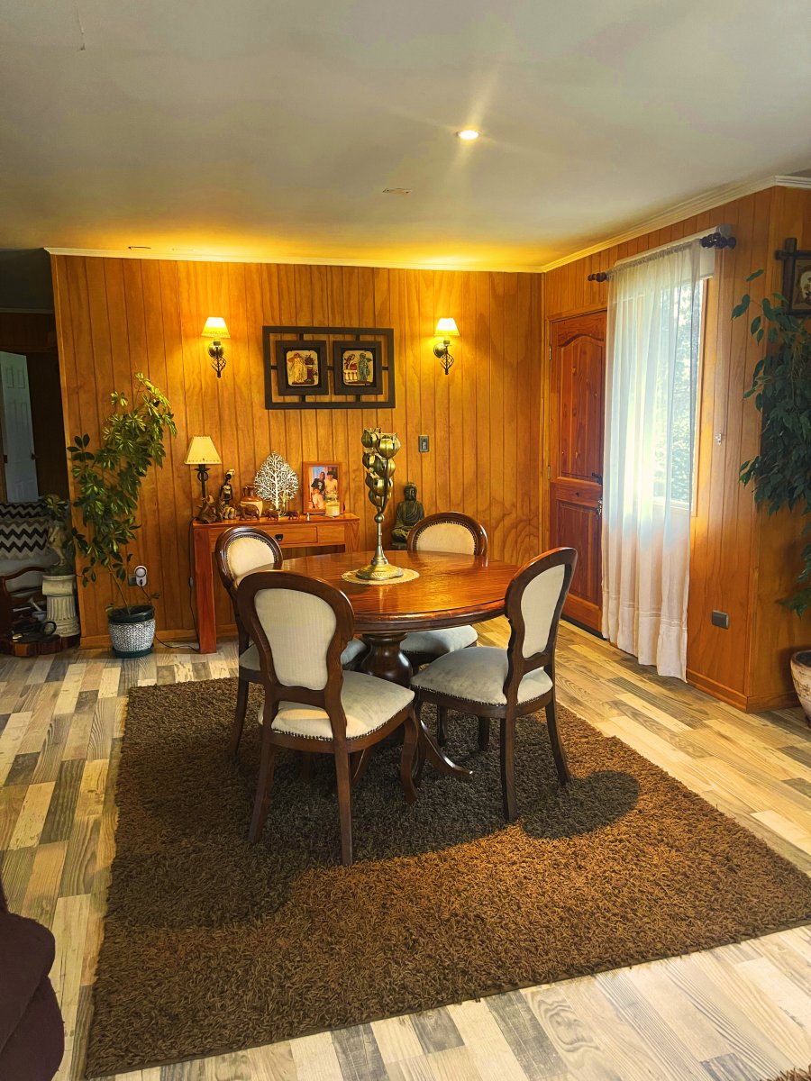 Se vende hermosa casa de 4D/3B en parcela El Tepual, Puerto Montt Vive la tranquilidad del sur en esta casa de 155 m² cubiertos + 30 m2 de quincho + 70 m² semicubiertos para taller o bodega, emplazada en una parcela de 5.100 m² 🌳. Ubicada en condominio residencial con acceso exclusivo para residentes, vigilancia 24/7, cámaras y control de acceso 🚓, a solo 5 min del aeropuerto y a 25 min de Puerto Montt ✈️🛣️. La propiedad ofrece: - 4 dormitorios, dos en suite 🛏️🛁 - 3 baños completos 🚿 - Amplio living-comedor de concepto abierto, luminoso y acogedor 🛋️✨ - Cocina independiente equipada con muebles 🍳 - Hall de acceso con chimenea y sala de estar 🔥 - Caminos compactados con gravilla 🚗 - Áreas verdes y jardines con árboles y flores 🌼 - Cancha de fútbol ⚽ - Piscina 🏊 - Quincho con bar y parrilla además de una tinaja incluida. - Agua por APR 🚰 - Bajo consumo eléctrico ⚡ - Estacionamiento 🚘 - Apta para mascotas 🐾 Con 43 m de frente y 122 m de fondo, es ideal para vivir en familia rodeados de naturaleza o desarrollar un proyecto turístico 🌿🏡. Gastos comunes: $15.000 CLP. Año de construcción: 2016. Conéctate con la vida tranquila que buscas, sin perder acceso a la ciudad. Agenda tu visita hoy mismo 📲 llamando al +569 5849 0315