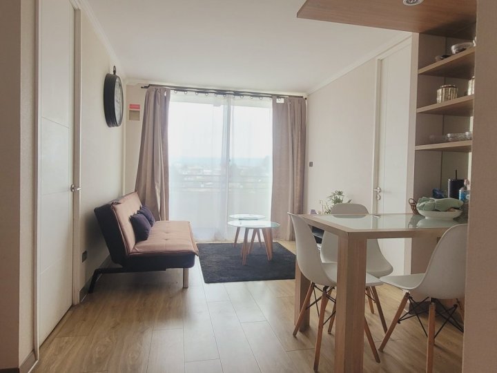 Depto en Villa Dulce, Viña del Mar 2D 2B 1E – ¡full amoblado y listo para habitar! 🏡 Dirección: Eduardo Titus #410, Villa Dulce, Viña del Mar 📍 Ubicado a pasos del troncal y con excelente conectividad hacia Viña, Valparaíso, Quilpué y Concón 🚍. Cercano a Universidad Santo Tomás y Federico Santa María 🎓. Características del departamento: - 2 dormitorios 🛏️ - 2 baños 🚿 - Piso 15 con balcón 🌅 - Estacionamiento propio 🚗 - Superficie total: 50 m² 📐 - Full amoblado 🛋️ El edificio ofrece: - Conserjería 24/7 🛡️ - Sala de eventos 🎉 - Gimnasio 💪 - Quincho 🍖 - Juegos para niños 👧🧒 - Áreas verdes 🌿 - Estacionamiento de visitas 🚘 - Piscina 🏊 Gastos comunes: $80.000 aprox. 💵 Disponible desde enero 2026 📅 Ideal para quienes buscan comodidad, seguridad y conectividad en un entorno tranquilo y familiar. Agenda tu visita y conoce tu próximo hogar en Villa Dulce 🙌 Contacto: +56 9 8928 0473 📲