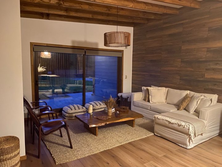 Excelente casa amoblada en Parcela de media hectárea en Condominio Idanmapu. Se arrienda por meses o temporadas. Tiene 3 dormitorios, 2 baños, la suite tiene un gran walk in closet y cama King. La segunda habitación tiene cama matrimonial y la tercera tiene cama nido, ambas con closet. Tiene un amplio living comedor con mucha luz natural, cocina integrada, amoblada y equipada con una isla al medio muy cómoda y funcional. Logia con lavadora-secadora y buen espacio para tendedero, útiles de aseo y otros. Cuenta con un comedor para 10 personas, ventanales de termopanel, estufa a pellet y una Toyotomi. La decoración de la casa es de estilo rústico elegante y está todo casi nuevo. Tiene estacionamiento techado y una terraza muy agradable con hermosa vista a los volcanes. La ubicación es en el km 18.5 de la ruta a Ensenada, por camino Río sur en el km 4., a 25 minutos de Puerto Varas. El condominio es muy seguro, tranquilo y hermoso. Cuenta con laguna, quinchos, senderos, y lugares para que los niños jueguen tranquilos. Su ubicación privilegiada le permite estar inmerso en la naturaleza, pero también cerca de Puerto Varas, Ensenada, volcán Osorno y su centro de ski, Puerto Montt, Frutillar, Lago Todos los Santos y Petrohue, entre otros. Disponible desde Octubre en adelante!