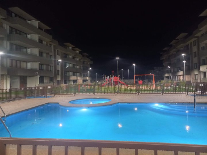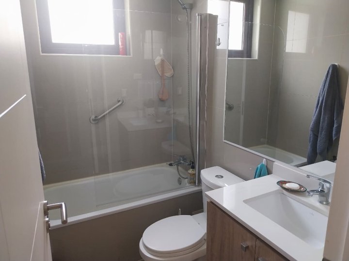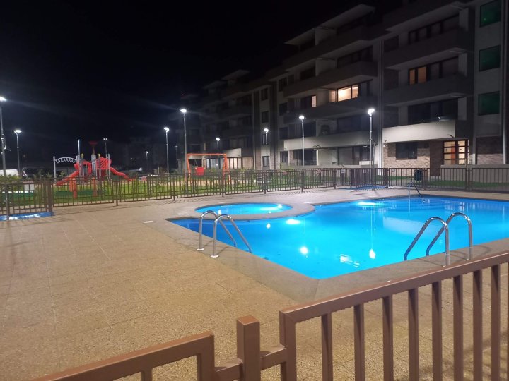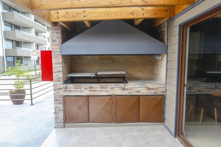 EXCELENTE DPTO MUY AMPLIO , LIVING COMEDOR MUY COMODO CON SALIDA A LINDA TERRAZA 2 AMPLIOS DORMITORIOS CON CLOSET DORMITORIO PRINCIPAL EN SUITE CON BAÑO COMPLETO CON VENTILACION NATURAL 2DO BAÑO COMPLETO COCINA SEPARADA EQUIPADA CON ENCIMERA, EXTRACTOR, HORNO ELECTRICOS, AMPLIOS MESONES Y MOBILIARIO PARA GUARDAR LOGGIA INCORPORADA CON INSTALACION PARA LAVADORA COCINA CON SALIDA TERRAZA VENTANALES DE TERMOPANEL , ESTUFAS MURALES ELECTRICAS, CORINAS ROLLER INSTALADAS LAMPARAS INSTALADAS ESTACIONAMIENTO AMPLIO EN SUPERFICIE CONDOMINIO MUY FAMILIAR CON PISCINAS, QUINCHOS CON PARRILLAS, JUEGOS INFANTILES, LAVANDERIA CON SECADORAS, CONSERJERIA 24 /7 CAMARAS DE SEGURIDAD AMPLIOS ESTACIONAMIENTOS DE VISITA DISPONIBLE 1 DE NOVIEMBRE SIN MASCOTAS