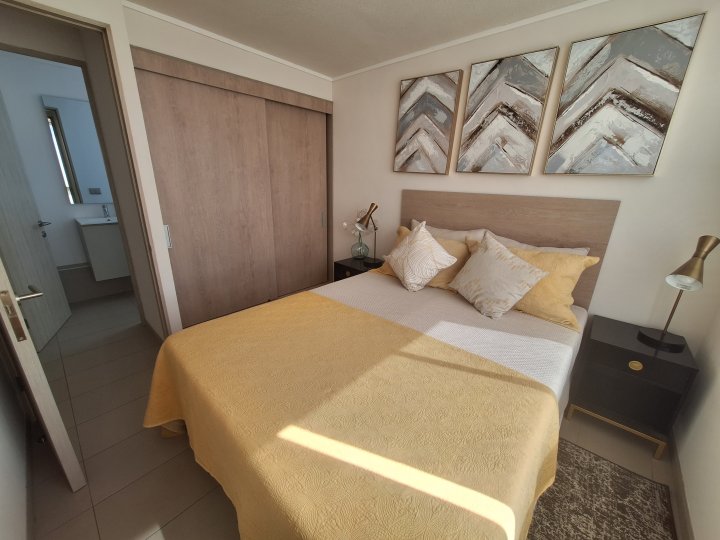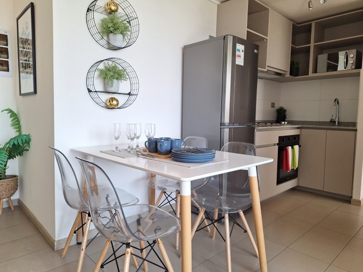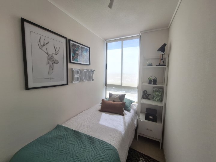 Departamento en arriendo, ofrece tres dormitorios con closets y un baño completo con conexión a lavadora. 3D 1B 50 m² $350.000 mensuales $75.000 aprox. De gastos comunes Con agradable terraza y cocina equipada con concepto abierto. Hay estacionamientos para arrendar en $60.000 mensuales Ubicado a dos cuadras de la estación de metro Lo Ovalle. Edificio ofrece seguridad 24/7, televigilancia y conserjería. Estacionamientos de visitas. Solicita requisitos y más información para agendar tu visita.
