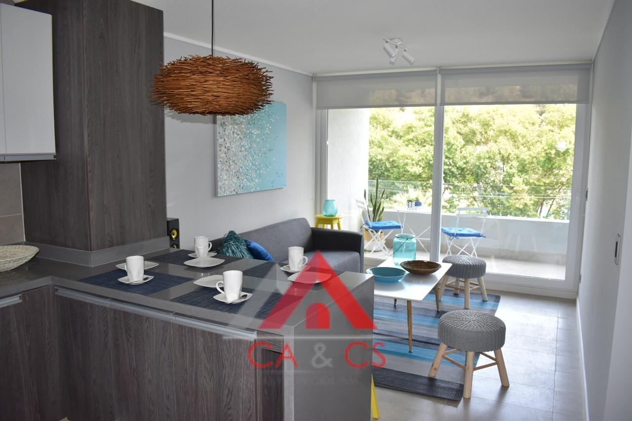 CA&CS ARRIENDA, por año corrido, estupendo departamento semi amoblado en Reñaca, sector Club Español, en Condominio Novopark. A pasos de supermercados, locomoción, playas, centros comerciales, farmacias y colegios. Ubicado en un piso 3, está orientado al norte muy luminoso y ventilado. Cuenta con 3 dormitorios, uno de ellos en suite, dos baños, cómodo living comedor con salida a terraza con vistas a jardines, piscina y áreas verdes. Amplia cocina totalmente amoblada y equipada con horno empotrado, encimera y campana. Además; cuenta con estacionamiento. El condominio tiene piscina al aire libre, quincho, bodega para bicicletas, gimnasio, salón multiuso, estacionamiento de visitas y conserjería. Visitas al 979897667 – [email protected]