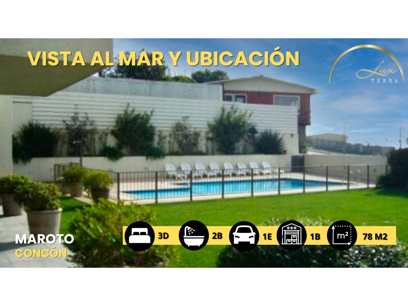 ¡Bienvenido al hogar de tus sueños en Concón! Este hermoso departamento te ofrece mucho más que una simple vivienda, es un estilo de vida elevado en uno de los destinos más codiciados de la costa chilena. Ubicado estratégicamente en Concón, este hogar cuenta con un hall de acceso que te da la bienvenida a un espacio lleno de luz y calidez. El amplio living-comedor es el escenario perfecto para tus reuniones familiares o encuentros con amigos, mientras que la cocina amoblada te invita a desatar tu creatividad culinaria. Con tres dormitorios espaciosos, incluyendo una suite principal con walk-in closet, este departamento ofrece el confort y la privacidad que necesitas. Los dos dormitorios adicionales, ambos con closets, comparten un baño completo, ideal para la comodidad de toda la familia. Pero lo que realmente hace destacar a esta propiedad es su impresionante terraza con vistas al mar, donde podrás disfrutar de momentos inolvidables junto a tus seres queridos. Además, este oasis de lujo viene completo con un estacionamiento y una bodega para tu conveniencia. Pero eso no es todo, este exclusivo complejo residencial ofrece una amplia gama de comodidades para que puedas disfrutar al máximo de tu vida costera. Desde una refrescante piscina al aire libre hasta una sala de usos múltiples, un gimnasio completamente equipado, un quincho para tus parrilladas y una sala multiuso y una sala de cine para tus eventos especiales, aquí encontrarás todo lo que necesitas para vivir la vida que siempre has soñado. No dejes pasar esta oportunidad única de convertir este departamento en tu nuevo hogar. ¡Contáctanos hoy mismo para programar una visita y descubrir el lujo y la comodidad que te esperan en Concón!
