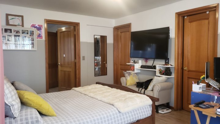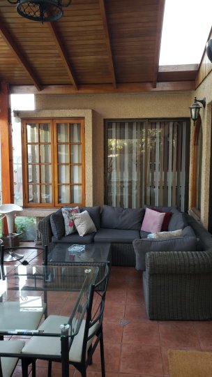 Hermosa casa aislada de 194 m² construidos en 500 m² de terreno, con excelente conectividad, a pasos de Estación Metro Los Orientales, supermercados, Homecenter, colegio San Agustín, parques, Estadio Nacional y Mall Plaza Egaña. Año 1999, apta para crédito. Primer piso: hall de acceso, living en desnivel con estufa a gas, amplio comedor, ambos con salida a terraza cerrada. Hall de distribución, sala de TV, baño completo, escritorio y dormitorio principal con baño en suite y walk-in closet. Cocina amoblada con comedor de diario, logia techada con conexión a lavadora y espacios de almacenamiento. Exterior con antejardín, patio, piscina y quincho. Estacionamiento para 2 vehículos. Mascotas bienvenidas. Segundo piso: hall de distribución, cuatro dormitorios amplios y un baño completo. Aire acondicionado en los dormitorios del segundo piso. Terreno de 14,6 m de ancho por 34 m de largo. Orientación norte . Contribuciones: $730.900. Gastos comunes: $0. Una propiedad luminosa, cómoda y muy bien ubicada, ideal para familias que buscan espacios amplios y cercanía a todo. Agenda tu visita y sorpréndete con su distribución y encanto.