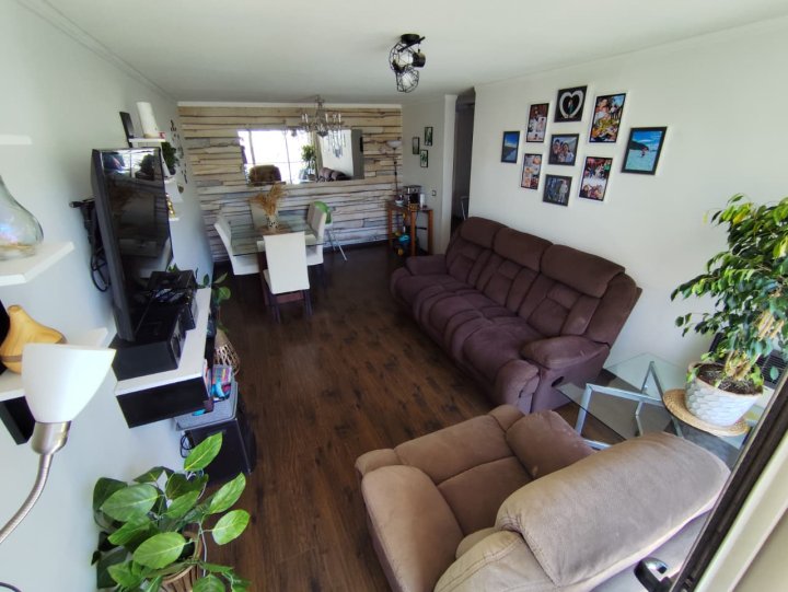 Venta Departamento Huechuraba Departamento de 100 m², orientación norte 🌞, en cuarto piso 🏢. Cuenta con 3 dormitorios 🛏️, principal en suite 🚿, y 2 dormitorios gemelos, todos con clósets 👚. Segundo baño completo 🛁. Hall de acceso, living y comedor con salida a balcón 🌿🪟, ideal para disfrutar de la luz natural. Cocina amoblada completa con encimera eléctrica 🍳 y logia independiente 🧺. Además, salita de escritorio para teletrabajo 🖥️. Incluye bodega 🧳 y 1 estacionamiento 🚗. Condominio con amplias áreas verdes 🌳, juegos infantiles 🛝, piscina 🏊, salón de eventos 🎉 y conserjería con acceso controlado 24/7 🛡️. Son 6 torres de 4 pisos, 6 departamentos por piso, ambiente tranquilo y familiar 🏡. Gastos comunes referenciales: 180.000 (UF) 💬. Apto para crédito hipotecario ✅. Balcón ✔️. Estacionamiento ✔️. Bodega ✔️. Pileta (piscina) ✔️.Otros Ideal para quienes buscan comodidad, buen asoleamiento y espacios para la vida en familia y el trabajo desde casa. Coordina tu visita y descubre tu próximo hogar en Huechuraba ✨. Corretaje de propiedades garantizado seguridad y rapidez