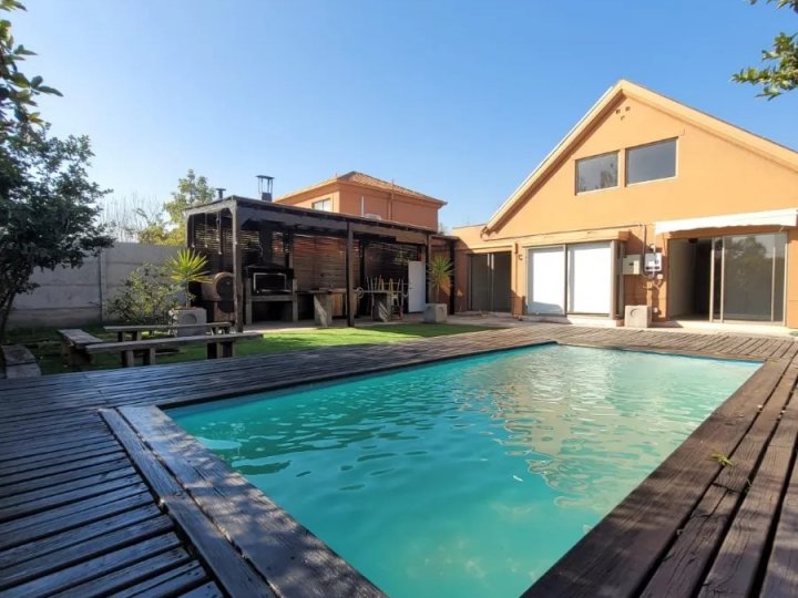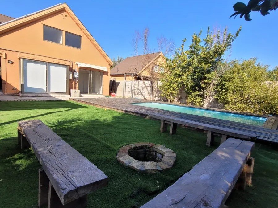 Tu nuevo hogar te espera en Chicureo, Colina Imagina despertar cada mañana rodeado de tranquilidad, en una casa diseñada para transformar tus días en experiencias únicas. Ubicada en condominio cerrado, esta propiedad de 2 pisos combina comodidad, seguridad y el encanto de los espacios pensados para compartir en familia y amigos. En el primer piso te recibe un acogedor living, una cocina independiente completamente equipada para disfrutar cada preparación, un práctico baño de visitas y el dormitorio principal en suite, con aire acondicionado que garantiza confort en cualquier época del año. En el segundo piso descubrirás dos amplios dormitorios, ambos con aire acondicionado, un baño completo y una sala de estar ideal para momentos familiares y de relajo. Pero lo más especial de esta casa está, en su exterior: un patio soñado con una preciosa vista, piscina, áreas verdes, quincho y horno de piedra, perfectos para celebrar, descansar y disfrutar de la vida al aire libre. Tu rutina cambiará por completo: cada día será diferente, más relajado, más tuyo. Además, tendrás excelente conectividad por Autopista Los Libertadores y estarás muy cerca de colegio Pumahue, strip center, supermercado Santa Isabel, punto limpio, laguna, ciclovías y mucho más, todo lo que necesitas para vivir cómodamente y con calidad de vida. La propiedad cuenta además con estacionamiento para un auto y un gastos de mantención muy conveniente de $20.000.