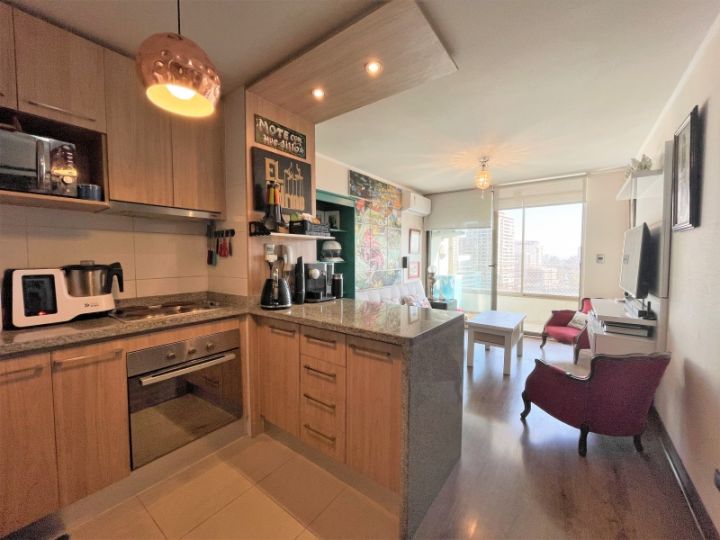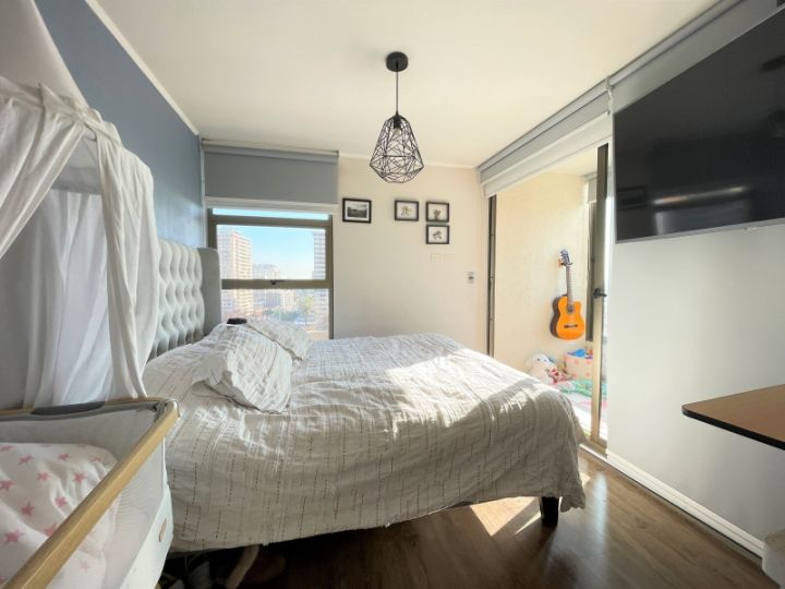 Se vende hermoso departamento con excelente ubicación. Son 53 M2 más 11 M2 de terraza, living comedor con cocina americana, 2 dormitorios más dos baños, principal en suite. Piso 10, orientación sur. Edificio con áreas verdes, gimnasio ,piscina, sala de eventos ,paseo exclusivo para mascotas. A pasos de metro plaza Egaña, excelente conectividad a la puerta, comercios, bancos etc. INCLUYE ESTACIONAMIENTO Y BODEGA. Año: 2016 Gastos comunes: $100.000 aprox Leonela - DalPropiedades