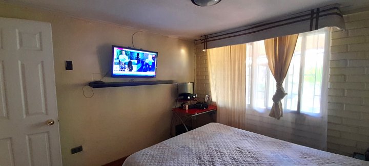 Linda casa ampliada y regularizada, en sector residencial de Barrio de Maipú, Villa de profesores, alta plusvalía del sector, buena conectividad, comercio en general, a minutos de Mall Arauco Maipú, Clínica Indisa, Bombas de bencina , Colegios, Restaurantes, supermercados, a 5 minutos metro del sol, buena locomoción, un barrio tranquilo para vivir en familia. Su distribución, primer piso: Living y comedor amplios, cocina con proyección de ampliación, como cocina integrada, Entrada de auto para dos vehículos techado tipo porche, mas antejardín amplio. Baño primer piso amoblado con ducha Shower door. Dormitorio amplio con Closet, segundo dormitorio mediano con closet. Patio grande con terraza techada de madera, vegetación y jardín, mas un quincho, piso cerámica. Segundo piso: Dormitorio 3 en Suite amplio, con baño completo amoblado con ventilación natural, Closet, con mucha luz natural. Dormitorio 4 amplio para cama de dos plazas, con closet Dormitorio 5 mediano con closet, para espacio cama de dos plazas Sala de estar mediana , todo con piso flotante nuevo. Baño medio amoblado y amplio con ventilación natural. Priscila - DalPropiedades