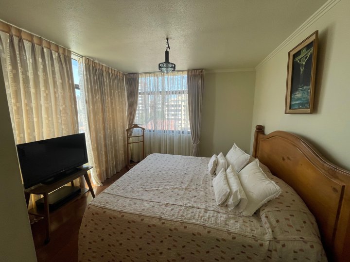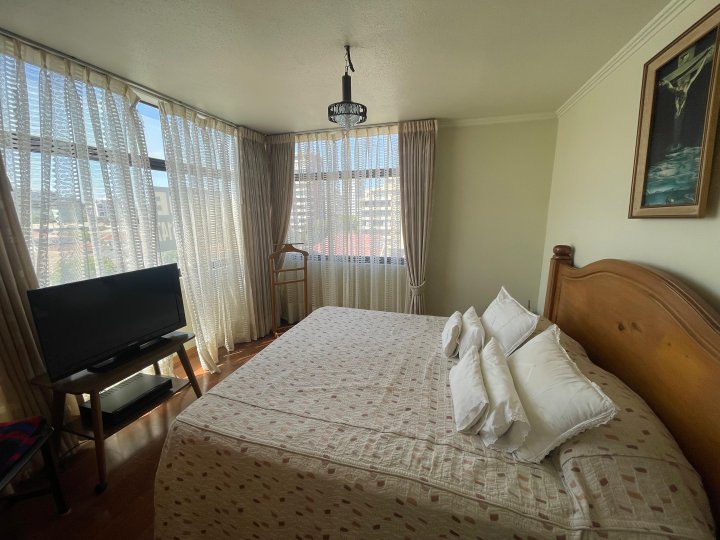Amplio y Céntrico Depto 4D3B Viña del Mar Libertad 11 norte Vive en un departamento cómodo y funcional, a pasos de Av. Libertad, cercano a centros comerciales y a solo cuatro cuadras de la playa. Ubicado en piso 5 de edificio seguro y bien mantenido, con conserjería. - 4 dormitorios y 3 baños, incluyendo dependencias de servicio - Living comedor grande y acogedor - Cocina tradicional - Balcón - Superficie total 120 m² - Orientación suroeste - Estacionamiento y bodega - Edificio de 7 pisos - Gastos comunes: $200.000 CLP - Año de construcción: 1990 - Mascotas permitidas Un espacio ideal para familias que buscan amplitud, buena conectividad y un entorno tranquilo. Disfruta de la cercanía a la playa y a servicios claves de Viña del Mar, en un edificio con excelentes mantenciones. Agenda tu visita y conoce tu próximo hogar.