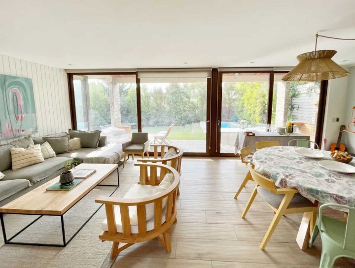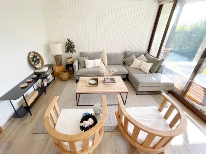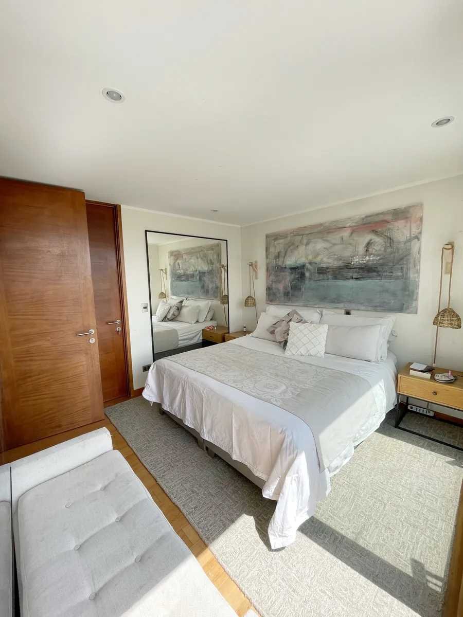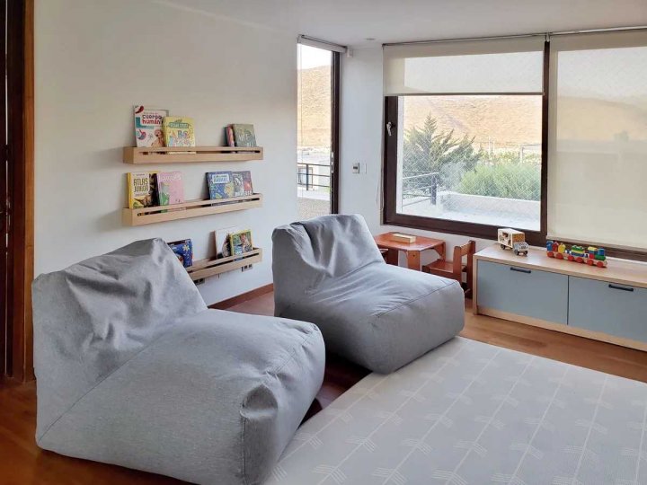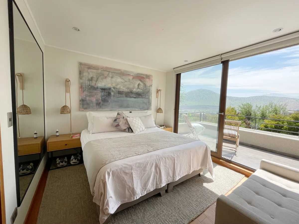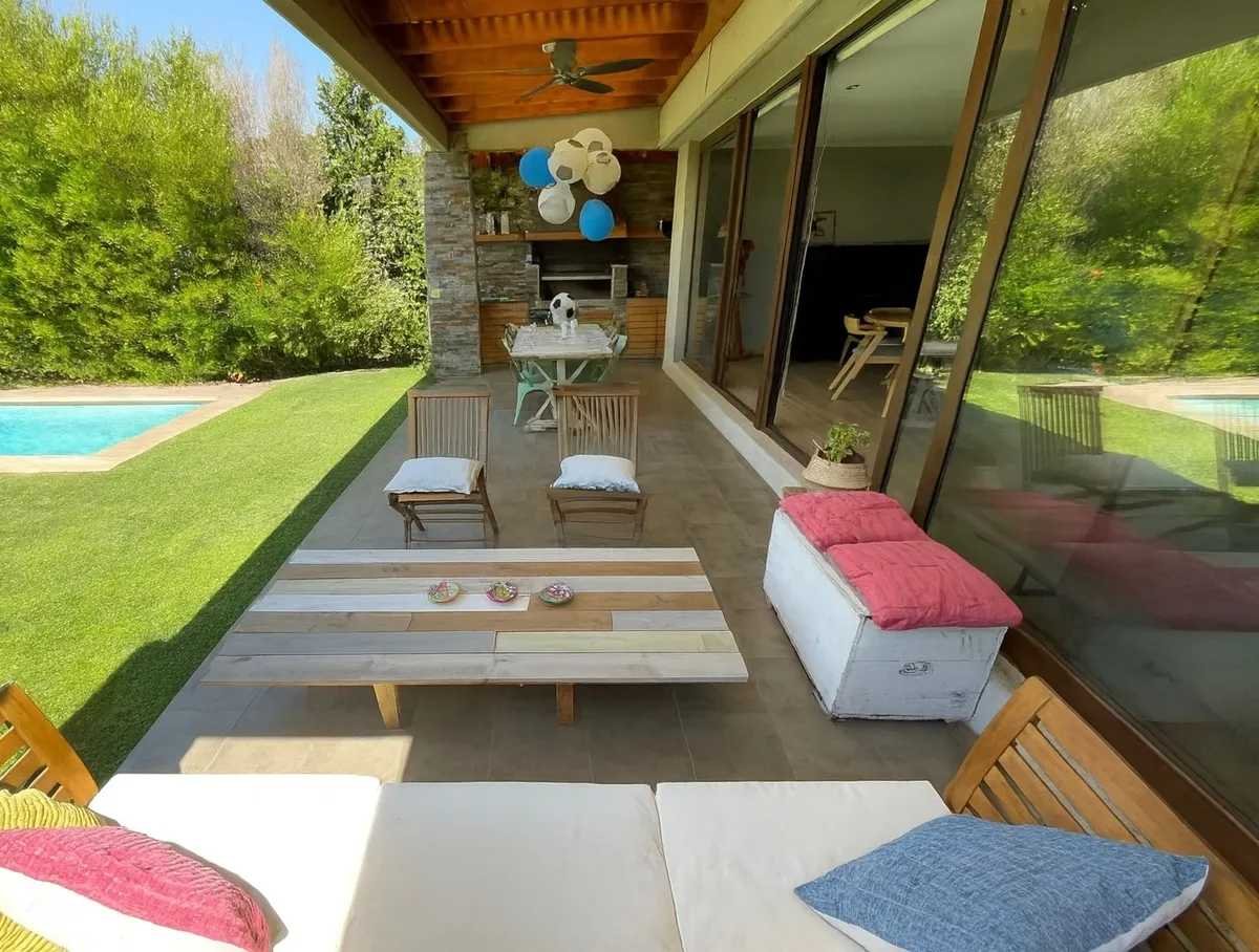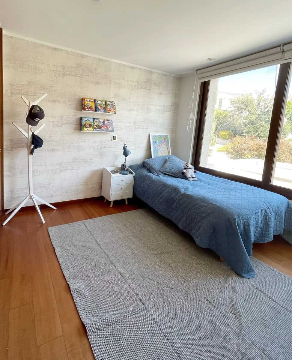 Bienvenido a su nuevo hogar en el exclusivo Condominio Terralta de Chamisero, en Chicureo, Colina. La casa, con sus 188 m², se asienta sobre un terreno de 430 m², proporcionando un entorno sereno y privado que invita al descanso y la recreación. Amplia, luminosa y cómoda casa remodelada, no perimetral, estilo mediterránea, con orientación Nororiente, en VENTA. Ubicada en tranquilo y consolidado condominio privado de Chamisero. Con excelente conectividad hacia Autopista Nororiente, acceso a Vitacura, Las Condes y sectores financieros. A pasos de La Alianza Francesa y Jumbo Chamisero. 4 Dormitorios (2 Dormitorios en Suite) + 4 Baños + Family Room + Sala de Estar + Piscina + Quincho + Terraza + Jardín + 3 Estacionamientos + Logia remodelada + Patio de Servicio. Primer nivel: Hall de entrada con doble altura. Living comedor integrado con salida a terraza techada. Cocina con mesón en isla. Completamente equipada con horno y microondas empotrados en altura, campana, encimera a gas y espacio para lavavajillas. Logia remodelada y patio de servicio techado. Family Room en cocina remodelada con muebles empotrados de lenga natural. Dormitorio principal con mueble empotrado a medida, en suite con walk-in clóset, clóset de muro y salida hacia el jardín. Amplio baño completo con doble vanitorio, ducha y shower door. Baño de visitas con luz natural. Segundo nivel: Amplia y luminosa sala de estar con salida a terraza. Muebles a medida empotrados. Segundo dormitorio en suite con salida a terraza. Baño completo. 2 Dormitorios con clóset de muro de cuatro puertas. Baño completo con tina y luz natural. A/C en sala de estar. Clóset ropa blanca Equipamiento y exterior: Hall, Cocina, Comedor y Living con piso de porcelanto. Segundo piso, con piso flotante. Calefacción por losa radiante. Ventanas termopanel en toda la casa con marcos de PVC y folio madera. Piscina. Terraza techada. Jardín con riego automático. - Estacionamientos descubiertos para 3 autos. 188 m2 construidos.