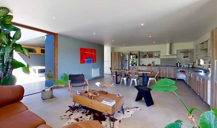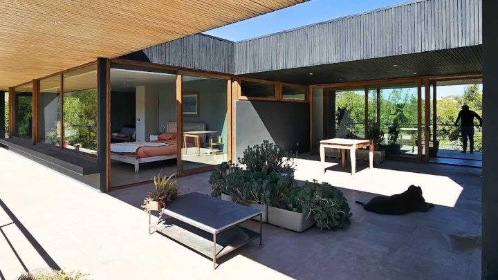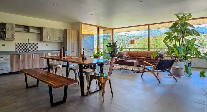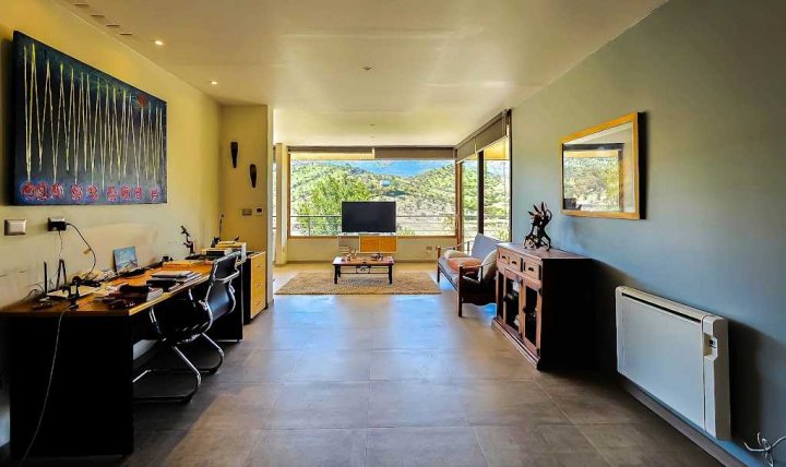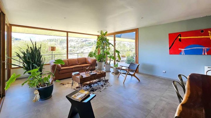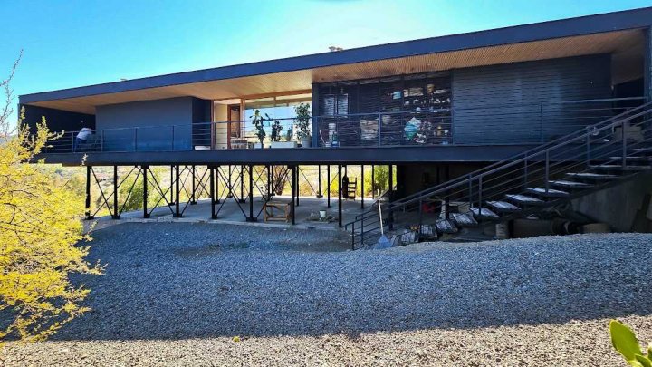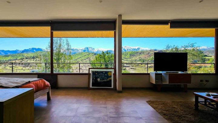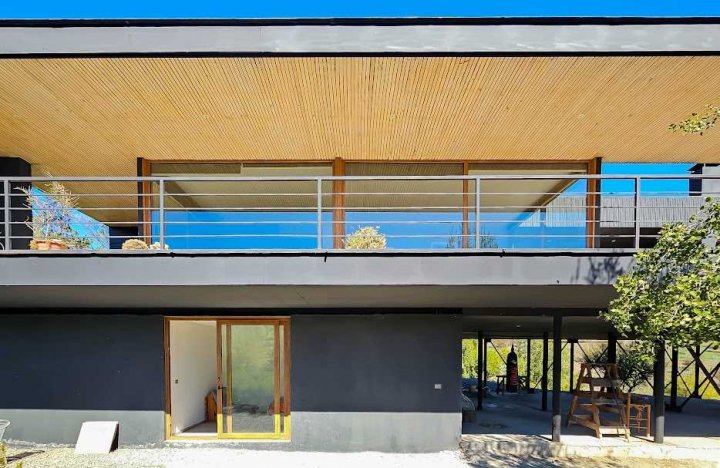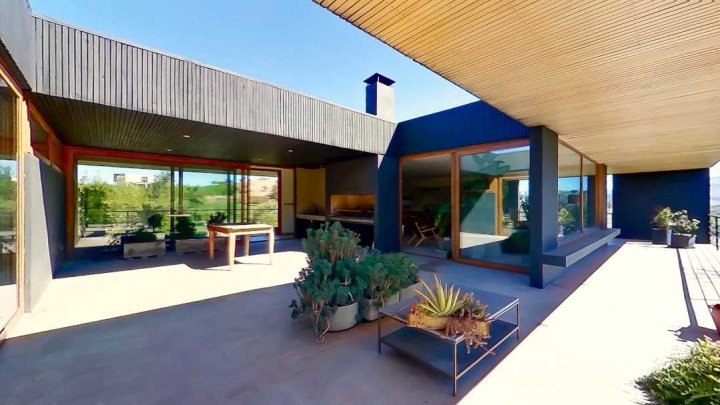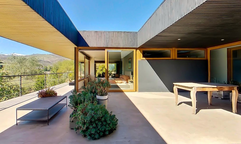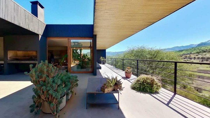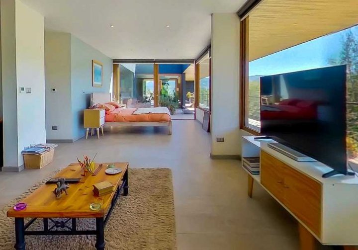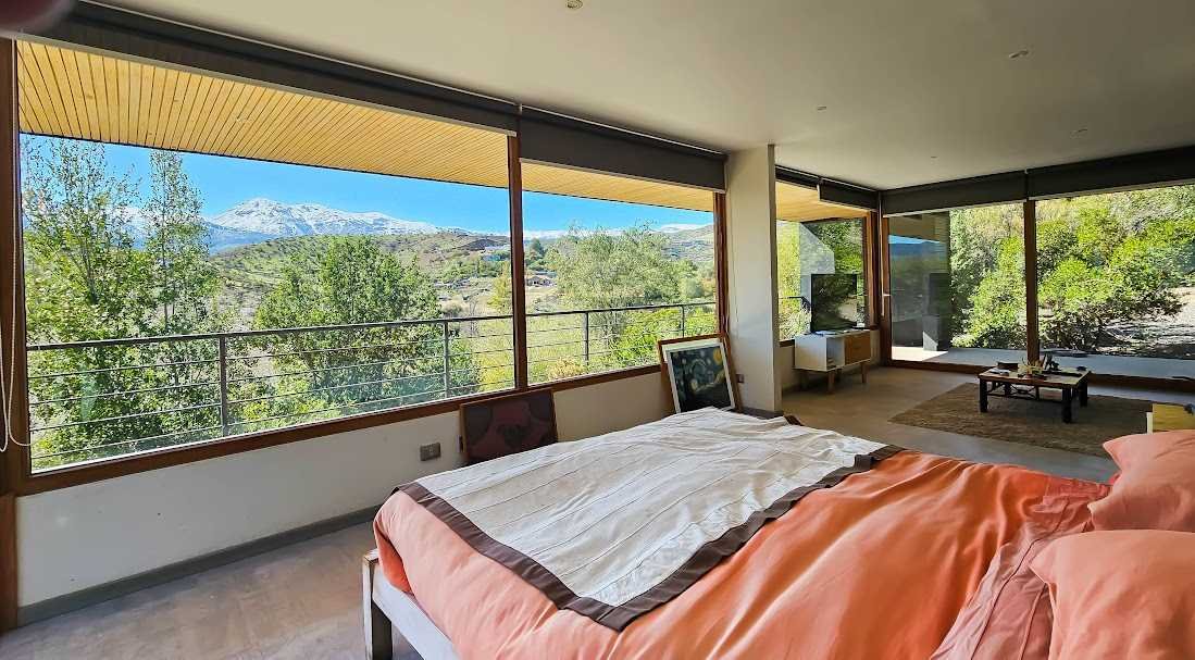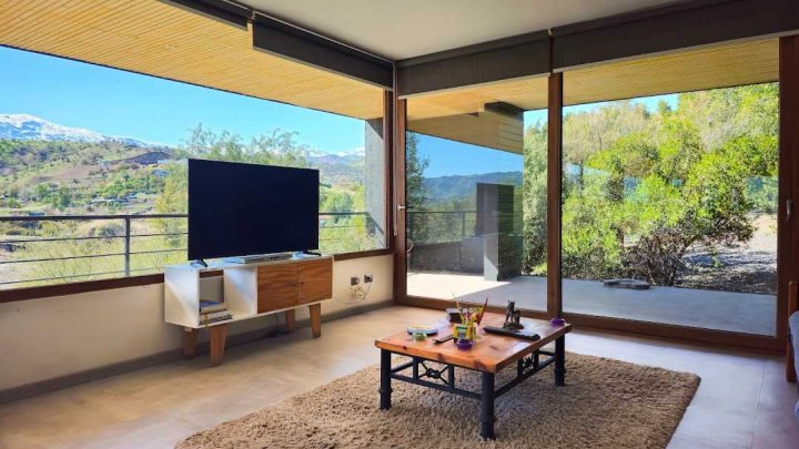 Casa Moderna con maravillosas vistas a la cordillera de Los Andes , montañas y al valle, en condominio Hacienda de Chacabuco. Condominio con accesos controlados, Safecard, seguridad 24/7. Entorno campestre y tranquilo. Zona y entorno con sectores para hacer trekking, mountainbike, pic nic, ski acuático, caminatas. Condominio posee reserva ecológica para goce y disfrute de los propietarios y comunidad. Condominio a sólo 40 minutos de Santiago por Autopista Los Libertadores. Esta casa de estilo moderno – contemporáneo se encuentra en una ladera. La fachada presenta líneas limpias y un diseño minimalista, complementado por grandes ventanales que permiten la entrada de luz natural y enmarcan la vista al paisaje. Muy luminosa. DESCRIPCION: - Cocina_ living- comedor integrados con salida a terraza y sector parrilla. Este concepto crea sensación de amplitud y la interacción social, es el corazón de la casa. - Baño de visitas completo - Sector privado con escritorio y gran dormitorio principal con una maravillosa vista al hermoso paisaje, baño en suite. # este sector se puede convertir en 1 o 2 dormitorios mas - Terraza interior con parrilla Dormitorio en suite para visitas en planta baja EXTERIOR: - Portón automático - Grandes terrazas que rodean toda la casa - Terraza interior con parrilla para asados - Jardín formado por arboles nativos - Gran sector de caniles - Gran espacio en planta baja para hacer mas dormitorios, o gimnasio. 280 metros aprox. EQUIPAMIENTO: - Ventanas termopanel - Pisos de porcelanato en toda la casa - Cocina equipada con encimera a gas, horno eléctrico y campana - Calefacción eléctrica por losa radiante y radiadores eléctricos - Generador eléctrico a bencina - Bombona de gas de 350 litros. - Sistema constructivo: vigas de acero y Metalcom Casa con recepción final Los metros cuadrados son aproximados.