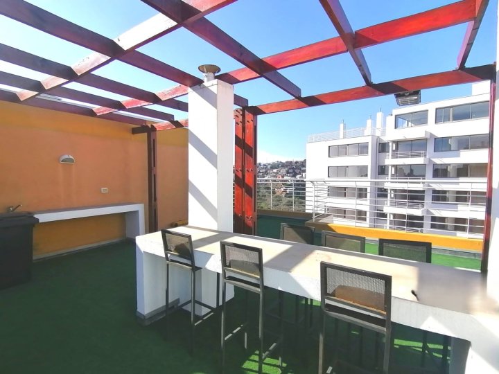 Se arrienda dpto 3D/2B + estacionamiento techado – Navío San Martin, San Roque (Valparaíso) $550.000 GGCC INCLUÍDOS Luminoso y cómodo, condominio tranquilo, con locomoción a la puerta y todos los servicios a pasos. A 10 minutos del centro de Valparaíso. CARACTERÍSTICAS: - Living comedor con salida a terraza de 5 m² con vista despejada. - Cocina separada - Dormitorio principal en suite, amplio y soleado. - Dos dormitorios adicionales con closet. - Segundo baño completo con tina y conexión a lavadora. - Piso flotante en todo el departamento Edifcio del 2016 - Departamento piso 3 CONDOMINIO: -Gimnasio, 2 quinchos, salón multiuso, lavandería, conserjería, cámaras y acceso controlado 24/7 REQUISITOS: - 3 últimas liquidaciones, Dicom, AFP, antigüedad laboral