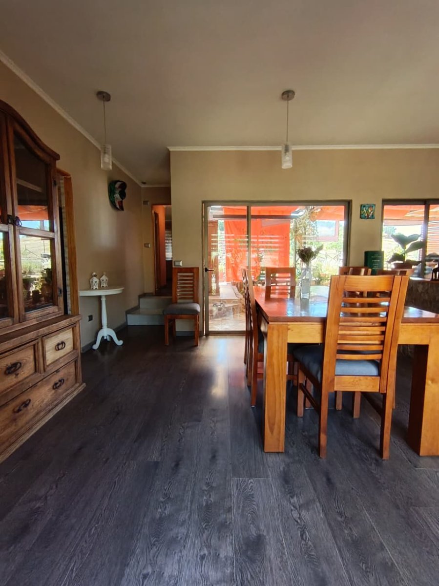 ¡Oportunidad única para vivir con amplitud y naturaleza! 🏡✨ Esta casa se alza sobre una parcela de 5.0053 m² 🌳 de terreno, ideal para quienes buscan privacidad, aire libre y múltiples usos del terreno. Con 180 m² de casa totales, ofrece una distribución pensada para familias numerosas. La propiedad consta de 2 casas. Una principal de 170 mts2, con 5D, 3 baños, terraza quincho , piscina, cocina amoblada, encimera, horno, lavavajillas. Piso de porcelanato y piso flotante según el área. Ventanas termopanel, calefacción con chimenea Amesti. Construída con Metalcom y revestida de concreto. Y una segunda vivienda, más pequeña, de 48 mts2 , con 2 dormitorios y 1 baño. En total ambas casas cuentan con 7 dormitorios 🛏️ y 4 baños completos 🚿, más un baño de servicio 🧼, brindando confort y funcionalidad en cada ambiente. Dispone de 5 ambientes versátiles para diseñar tu living, comedor y espacios de trabajo o recreación a medida 🎯. Estacionamiento propio 🚗 para mayor comodidad. Construida en 2020 🏗️, combina estilo actual con la solidez de una propiedad lista para habitar. Un entorno abierto y luminoso invita a disfrutar del verde, crear huertas, sumar áreas deportivas o montar quincho y juegos al aire libre 🌞. Si buscas metros, comodidad y proyección, esta es tu chance de dar el salto. Coordina tu visita y descubre todo lo que esta propiedad puede ofrecerte. 📞📩
