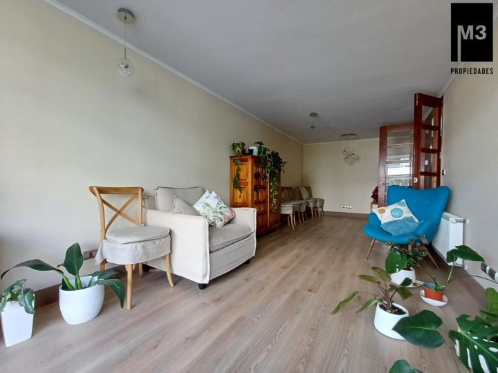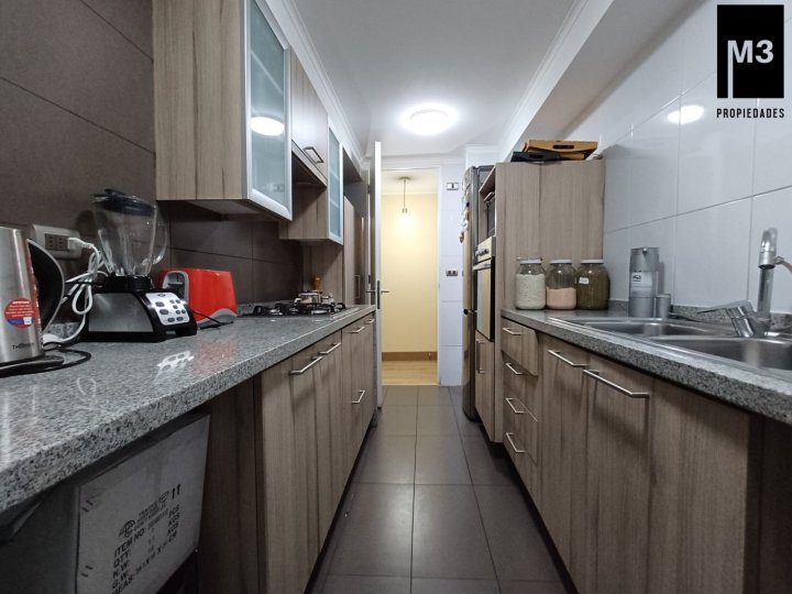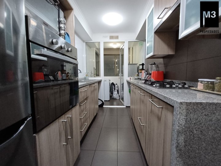 Se vende precioso departamento ubicado en el límite de la comuna de Ñuñoa y Providencia, en calle Diego de Almagro. Sector muy tranquilo, donde se desarrolla una vida muy de barrio, con muchas plazas aledañas para disfrutar en familia, con comercio y transporte a minutos. - 85 m2 útiles / 105 m2 totales. - Orientación Nor-Poniente mirando hacia calle lateral tranquila. - Piso bajo muy práctico y seguro. - Todo el departamento cuenta con piso flotante de alto tráfico. - Calefacción por radiadores. - Caldera independiente. - Hall de entrada. - Cocina muy bien equipada, con encimera a gas, horno y campan eléctrica, cubierta de cuarzo. Logia de buen tamaño con lavadero. - Living Comedor de buen tamaño con salida a una amplia terraza con vista despejada. - 3 dormitorios y 2 baños completos con ventilación forzada. Principal en suite con walk-in closet y terraza independiente. - 2 estacionamientos en tandem. - 1 bodega con repisas. - Gastos comunes app. 200,000 - Contribuciones app. 180,000 cuotas trimestrales. Equipamiento Edificio: Estacionamientos de visitas, Piscina en primer piso, Quinchos panorámicos, Sala Gourmet, Salón de reuniones, Gimnasio, Sala de Juegos para niños, Preciosa pérgola central.