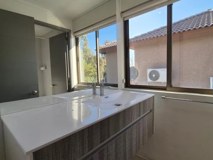 Arriendo Casa en Chicureo – Condominio Cerrado Más que una casa, esta propiedad es una invitación a vivir cada día en un ambiente de relax, naturaleza y comodidad, con un patio verde precioso que se transforma en el corazón del hogar. La vivienda cuenta con 2 pisos excelentemente distribuidos: Primer Piso: Hall de distribución, Baño de visitas, Cocina americana con conexión a logia techada, Living comedor juntos con calefacción por radiador eléctrico, Dormitorio principal en suite, con salida a terraza privada, baño con showerdoor y amplio closet, Acceso a un hermoso patio con quincho, terraza y estacionamiento. Segundo Piso: Sala de estar acogedora, 2 dormitorios amplios, 1 baño completo, Aire acondicionado para mayor confort, Exteriores: Gran terraza con parrilla incluida, Mesón de diseño con lámparas incorporadas, ideal para compartir con familia y amigos, Patio verde que transmite paz y frescura en todo momento. Además, la casa cuenta con cortinas tipo roller en todas las habitaciones, lo que aporta un estilo moderno y funcional. Vivir aquí es disfrutar de un espacio que combina comodidad, estilo y tranquilidad, en un entorno seguro dentro de condominio cerrado.