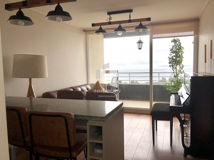 ¡Cómodo y acogedor departamento de 2B2B, con vista! Colindante a Lomas de Montemar , excelente ubicación. En sus alrededores encuentras bancos, supermercados, locomoción colectiva, a escasos minutos de la playa, restaurantes, centros comerciales, clínicas, colegios, entre otros. Departamento de acogedor diseño, posee 2 dormitorios y 2 baños, principal en suite, instalación para lavadora , cocina americana equipada con campana retráctil, encimera eléctrica, horno empotrado, mueble para despensa, living comedor con salida a la terraza , donde podrás disfrutar de una hermosa vista, piso flotante y cerámico, cortinas roller dobles. 1 estacionamientos 1 bodega Gastos comunes $90.000 aproximados Contribuciones: $40.800 El edificio cuenta con piscina al aire libre, quinchos, gimnasio, lavandería, sala multiusos, conserjería 24/7. Superficie útil: 51 m2 aproximados, a validar en tasación bancaria. Terraza: 3 m2 aprox. Para más información o coordinar visita, no dude en contactar a Inmobilien Propiedades vía correo electrónico o a través de WhatsApp.