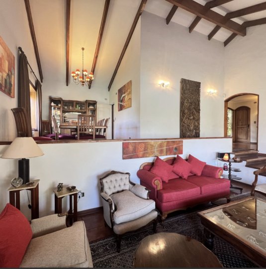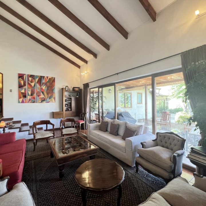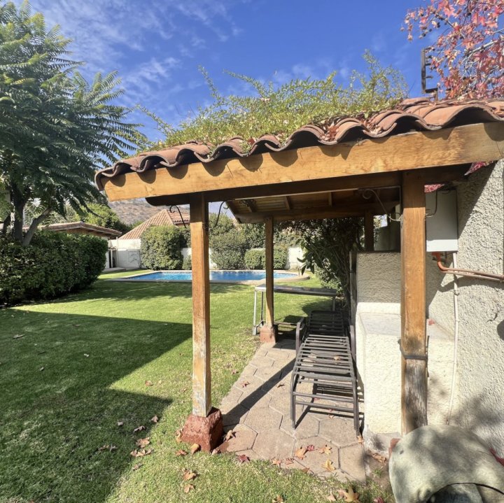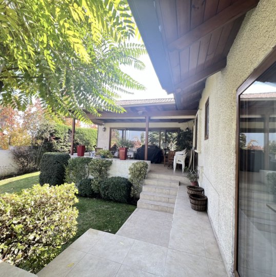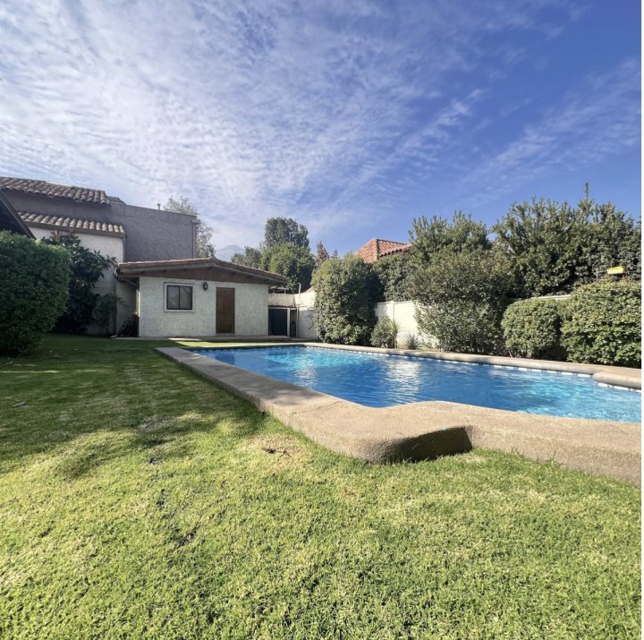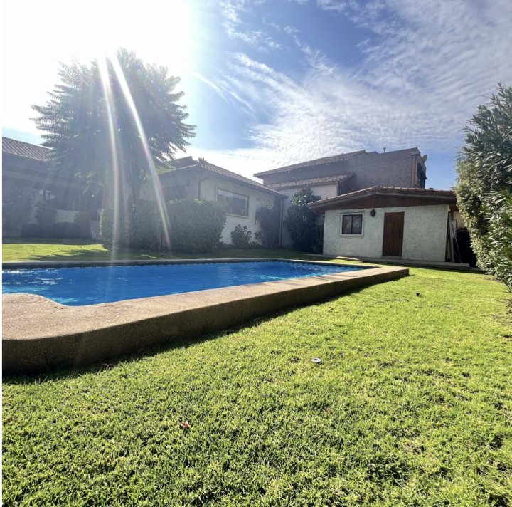 Hermosa Casa de 2 Pisos en Vital Apoquindo de 7 Dormitorios (2 en suite) 6 Baños con Vista Sur, No�e y Oriente Esta encantadora casa de dos pisos es pe�ecta para quienes buscan espacio, comodidad y estilo. Con una ubicación privilegiada cerca del Mall Los Dominicos, esta propiedad ofrece un entorno ideal para vivir. No Pareada y hace esquina, en calle de libre transito con excelente sistema de seguridad. Características destacadas: - Cocina remodelada con mobiliario y electrodomésticos de alta calidad. - Ventanas con termopanel para mayor aislamiento térmico y acústico. - Amplio living y comedor junto a la cocina, pe�ecto para recibir a familiares y amigos. - Terraza con vista al poniente, ideal para relajarse y disfrutar de las tardes soleadas. - Extenso jardín y piscina, pe�ectos para actividades al aire libre. - Casita independiente con 1 dormitorio y baño, ideal para visitas o como espacio de trabajo. - Antejardín con espacio para 4 autos - Contribuciones Trimestrales de $1.000.000 Agenda tu visita ahora Llámanos o escríbenos por DM. ¡Estamos aquí para ayuda�e a encontrar tu nuevo hogar! ¡No dudes en contactarme para más detalles!