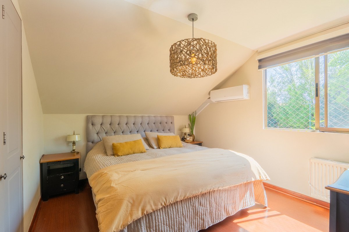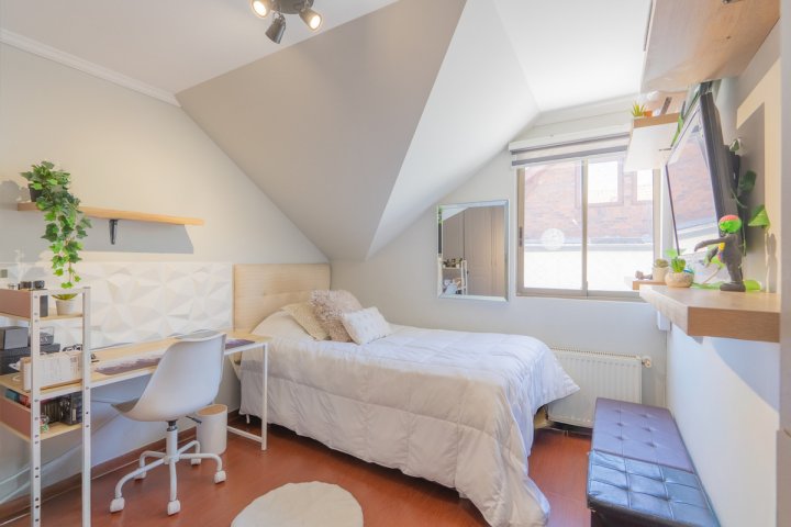 Casa en condominio cerrado en Alto Macul, sector residencial y consolidado de La Florida, con seguridad 24 horas, acceso controlado y entorno familiar. La propiedad destaca por su amplio terreno, gran jardín con piscina, y una remodelación completa que combina confort, diseño y funcionalidad. Con más de 160 m² construidos, esta casa ofrece espacios amplios, luminosos y bien distribuidos: Primer piso: • Dormitorio principal en suite, con excelente iluminación y clóset. • Segundo dormitorio ideal para escritorio o dormitorio de niño pequeño. • Cocina ampliada y remodelada, moderna y funcional, conectada con terraza y jardín. • Living y comedor con salida a terraza techada, perfectos para compartir. Segundo piso: • Gran sala de estar familiar, con enorme espacio y terraza o balcón • Tres dormitorios amplios, todos con buena luz natural. • Baño completo. • Balcón con vista panorámica a Santiago, una ampliación que realza el valor y el atractivo de esta propiedad. Exterior con terraza, piscina y hermoso jardín formado, ideal para disfrutar en familia o con amigos. Casa en excelente estado, con pisos nuevos, cocina remodelada, y detalles modernos en cada espacio. Ubicada dentro de un barrio cerrado y seguro, cercano a colegios, áreas verdes, servicios y todo lo que necesitas para tu Familia. * Metros de la propiedad y gastos comunes, informados por sus dueños. Una casa lista para disfrutar, en uno de los mejores sectores de Alto Macul. SOMOS CASASCHIC, Corredores de Propiedades. Contactanos para coordinar tu visita, sabemos que te va a encantar!!