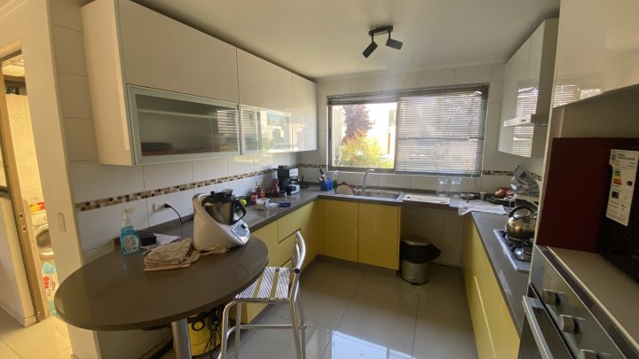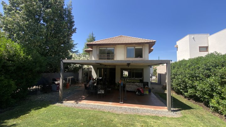 Estupenda casa en venta en Condominio Los Nogales, en Santa Elena, Chicureo Norte, comuna de Colina. Construcción del 2016 con 118 m² y terreno de 336 m², ideal para familias que buscan vida de barrio, seguridad y excelente conectividad. Primer piso: amplio hall de acceso, living y comedor separados, muy luminosos y con salida directa a terraza y jardín; cocina moderna y funcional con comedor de diario; baño de visitas. Segundo piso: dormitorio principal en suite con walk-in closet, más dos dormitorios de buen tamaño con closets y un baño completo compartido. El condominio ofrece acceso controlado 24/7 y vigilancia perimetral, brindando total tranquilidad. Entorno privilegiado en el corazón de Santa Elena, rodeado de áreas verdes, plazas y senderos para disfrutar al aire libre. Conectividad rápida a Autopista Los Libertadores y cercanía a colegios de prestigio como Pumahue, Saint John’s Villa Academy y Trewhela’s School. Orientación nororiente. Gastos comunes aprox. $130.000 CLP. Extras que suman valor: estacionamiento, piscina y permite mascotas. Apta para crédito. Una casa práctica, luminosa y bien distribuida, lista para disfrutar la vida en familia en uno de los sectores más cotizados de Chicureo Norte. Agenda tu visita.