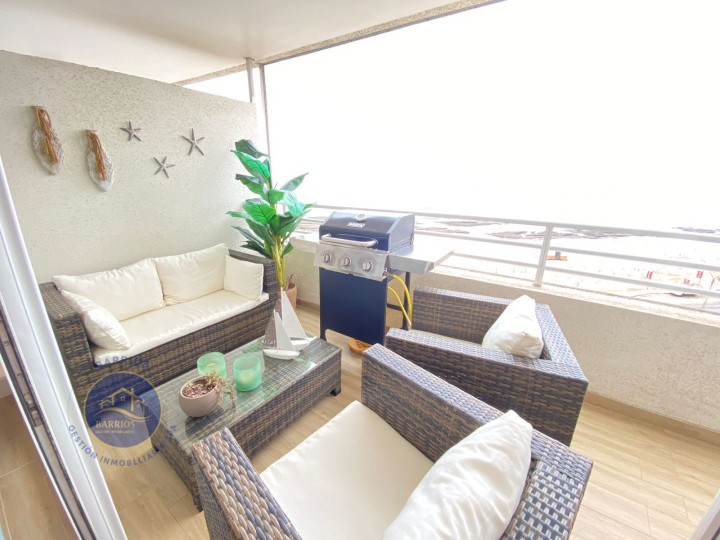 Código BGI: 353AY Departamento 3 habitaciones en venta, sector Llacolén Metros interiores: 199m² + 22 m² de terraza Dirección: Av. Jaime Guzmán Errázuriz 4200, piso 7 Ubicación: Sector Llacolén, barrio residencial consolidado, cercano a costanera, comercio y servicios. Valor: UF 7.700 La propiedad de 123 m² se encuentra en el piso 7 del Edificio Playa Llacolén, ubicado en Av. Jaime Guzmán Errázuriz 4200, sector Llacolén, Antofagasta. Interior: 3 habitaciones (1 en suite) 2 baños Cocina cerrada amoblada y equipada Living comedor Hall de acceso Home office Logia y lavandería interior Comedor de diario Bodega Balcón con vista al mar Walking closet en habitación principal El condominio cuenta con conserjería las 24 hrs, ascensores, piscina, zona de juegos infantiles, lavandería, gimnasio, salón multiuso y estacionamiento de visitas. Valor: UF 7.700 Comisión: 2% + IVA Gastos comunes: $140.000 aprox. Contribuciones: $230.000 aprox. Código BGI: 353AY
