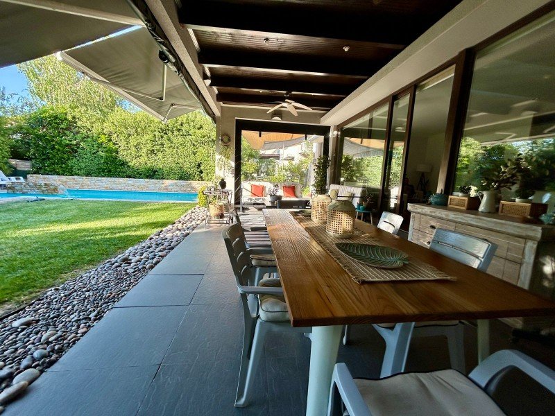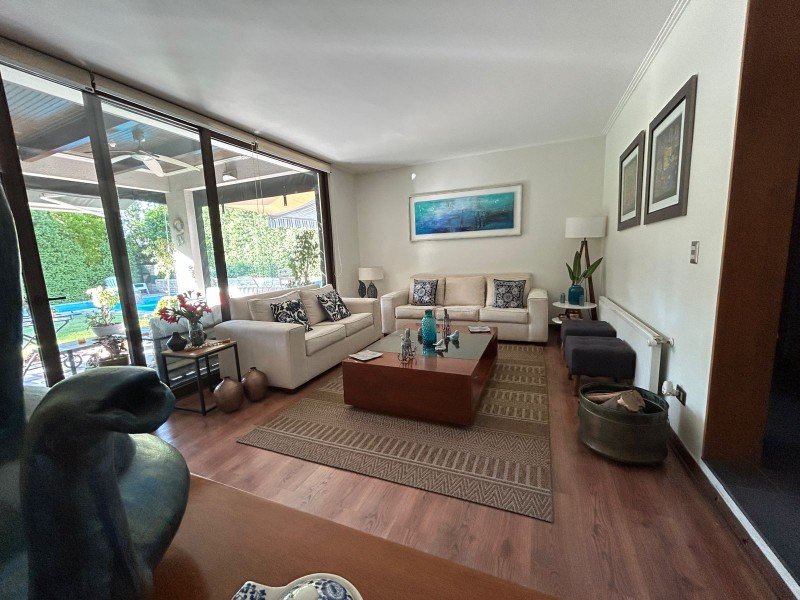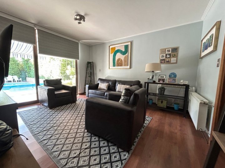 Casa en Venta en Condominio – Chamisero, Colina Preciosa casa de dos pisos en condominio consolidado no perimetral, ubicada en el sector de Chamisero, frente a Jumbo y con excelente conectividad a Autopista Los Libertadores, Radial Nor Oriente y Avenida del Valle. La propiedad cuenta con 445 m² de terreno y 171 m² construidos, orientación Nor Poniente (Norte–Poniente), lo que entrega excelente iluminación natural durante todo el día. Cercana a supermercados, servicios y destacados colegios como Dunalastair, Alianza Francesa y Lincoln. Distribución: 4 dormitorios 4 baños Dormitorio principal en suite con walk in closet Sala de estar Living y comedor Cocina equipada con comedor de diario Baño de visitas Exterior y servicios: Terraza techada Jardín con riego automático Piscina con calefactor Loggia cerrada Dormitorio de servicio con baño Bodega Equipamiento: Ventanas termopanel Pisos de ingeniería y porcelanato Calefacción por radiadores con caldera a gas 5 equipos de aire acondicionado Generador eléctrico Ablandador de agua Otros: 2 estacionamientos Gastos comunes aprox. $200.000 Año construcción: 2014 Excelente alternativa para familias que buscan amplitud, seguridad y calidad de vida en Chicureo.