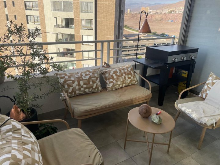 Se arrienda maravilloso departamento ubicado en sector sur de la ciudad, barrio exclusivo, cercano a colegios, universidades, casino, bancos, supermercados, tiendas, gimnasios, etc, de 3 Dormitorios, 2 baños completos, 1 bodega y 1 estacionamiento a 6.100 UF El departamento tiene: 1 dormitorio principal decorado con wallpanel , walking closet y baño en suite. 2 dormitorios secundarios, ambos con closet. 2 baños completos, uno de en suite. Hall de entrada Espaciosa cocina con grandes alacenas, muebles, encimera, lavaplatos doble y horno empotrado. Hermosa puerta francesa que divide el living comedor de los dormitorios Amplio living comedor Gran y cómoda terraza 1 estacionamiento 1 bodega (estacionamiento y bodega se encuentran juntos) piso 14 88,84 M2 totales 80.78 M2 cubiertos 8,06 M2 terraza Piso vinílico en cocina Piso porcelanato en baños El edificio tiene: Conserjería las 24 horas Cámaras de vigilancia Acceso controlado vehicular y peatonal Salón multiusos Áreas verdes Piscina Gimnasio Quincho Estacionamiento de visitas Departamento ideal para vivir cómodamente, en un barrio seguro y exclusivo en familia Valor venta 6.100 UF Valor GGCC: 200.000 CLP aproximados. Honorarios corredor: 122 UF comprador y 122 UF vendedor a la firma de la promesa con VV (vale vista), en custodia en notaría hasta la inscripción.