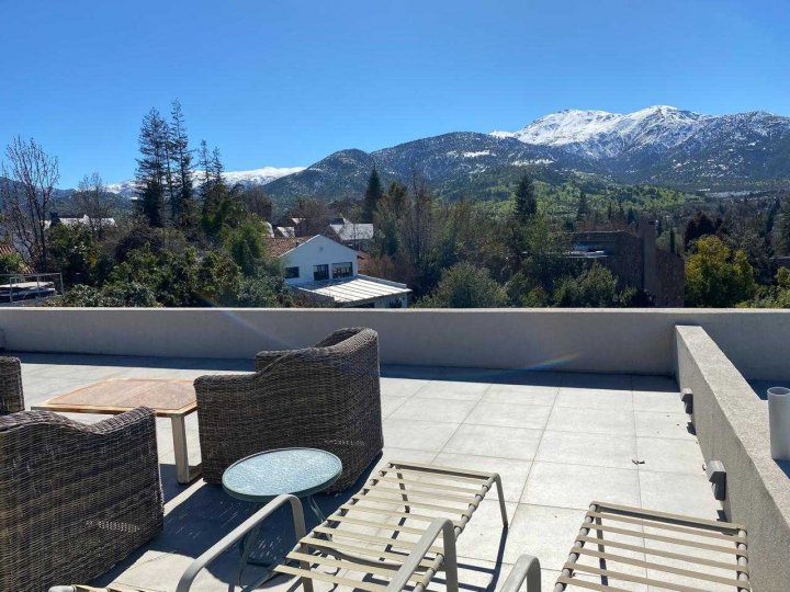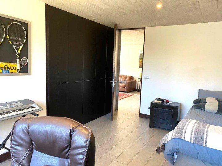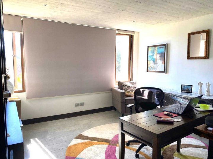 Espectacular casa mediterránea en exclusivo condominio Lomas de la Dehesa, donde se encuentra el club de golf. A pasos del colegio Santiago College y cerca del Everest y Monte Tabor. Amplios espacios, agradable luz natural, lindas vistas y sin ruidos de caminos principales. Primer nivel: Amplio hall de entrada, espacioso living y comedor separados, ambos dan a una línea de ventanales termopanel que permiten la entrada de luz natural y salida a gran terraza con parrilla empotrada, jardín y piscina, ideal para compartir en familia. A un lado, baño de visita, moderna cocina, con comedor de diario, servicios completos y gran logia cerrada. Al otro lado, gran sala de estar o dormitorio con segundo baño completo en frente. Calefacción central por radiadores. Segundo nivel: Al subir se llega a cómoda sala de estar, a un lado un baño completo y luego dormitorio. Al otro lado, segundo dormitorio en suite. En extremo opuesto, dormitorio principal con espectacular vista, gran walking closet, baño con tina de hidromasaje y ducha separados, adicionalmente espacioso escritorio o pieza de niño con medio baño. Calefacción central por radiadores. Tercer nivel: Amplia terraza al aire libre con maravillosas vistas. Vende EC PROPIEDADES