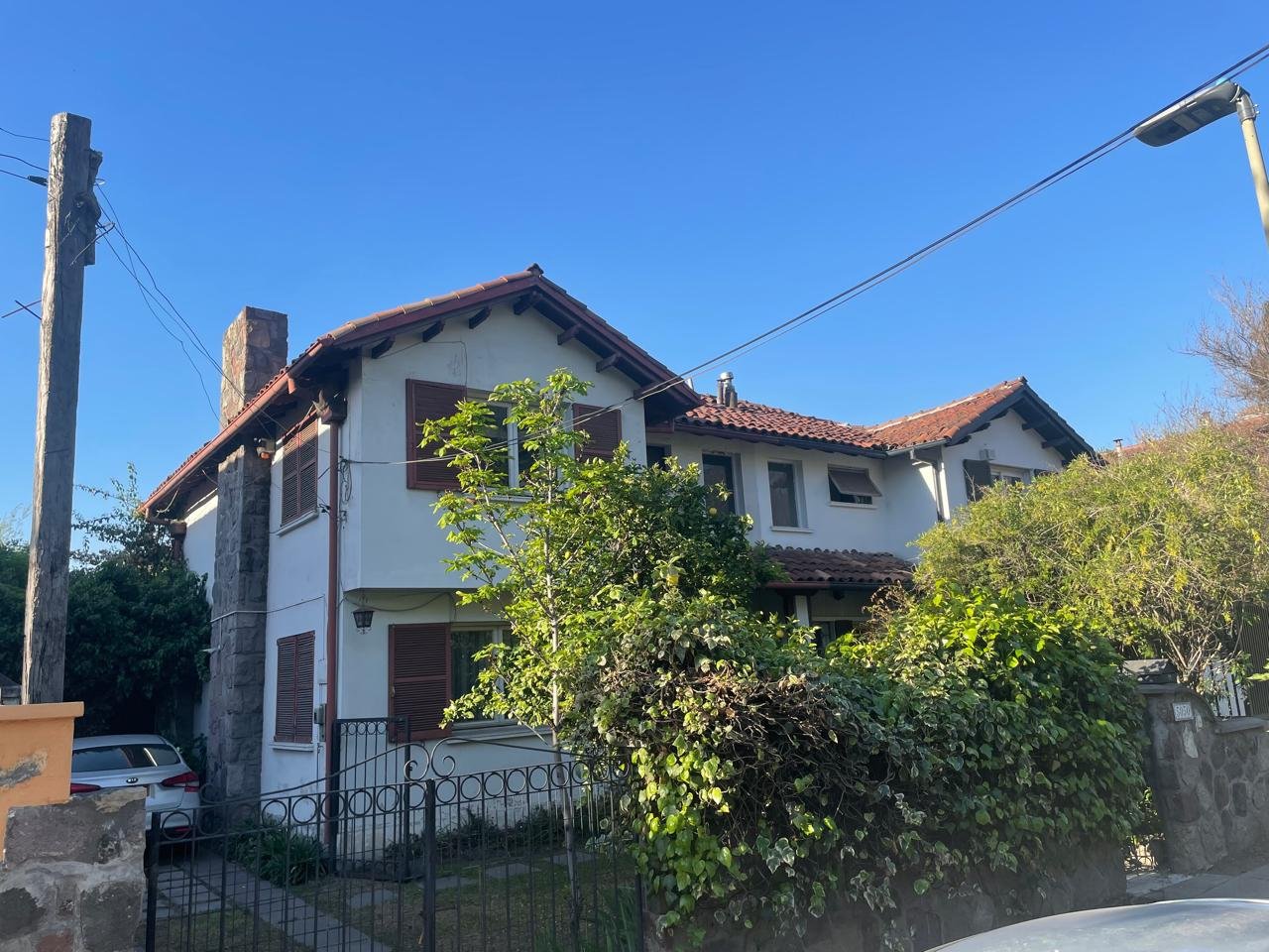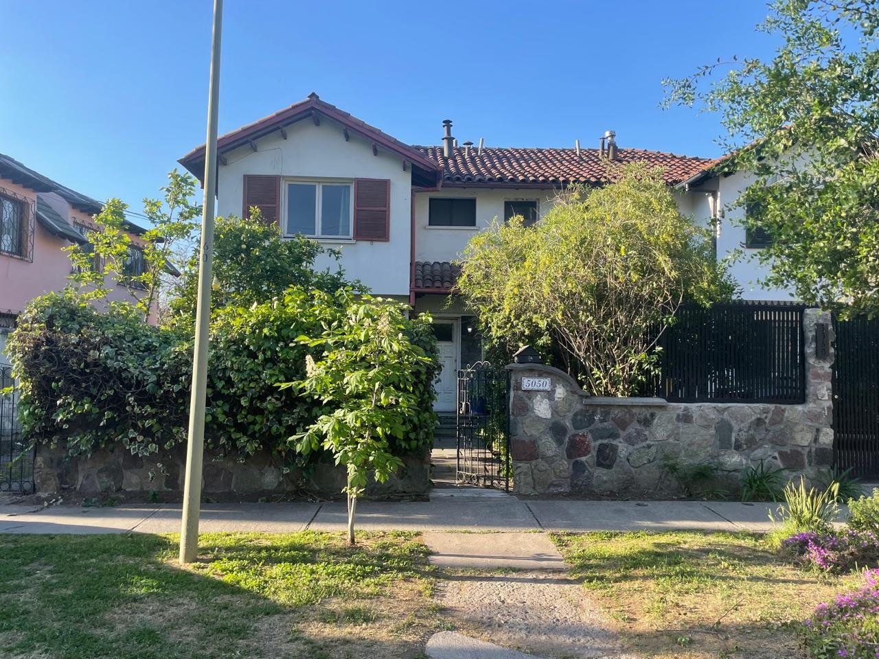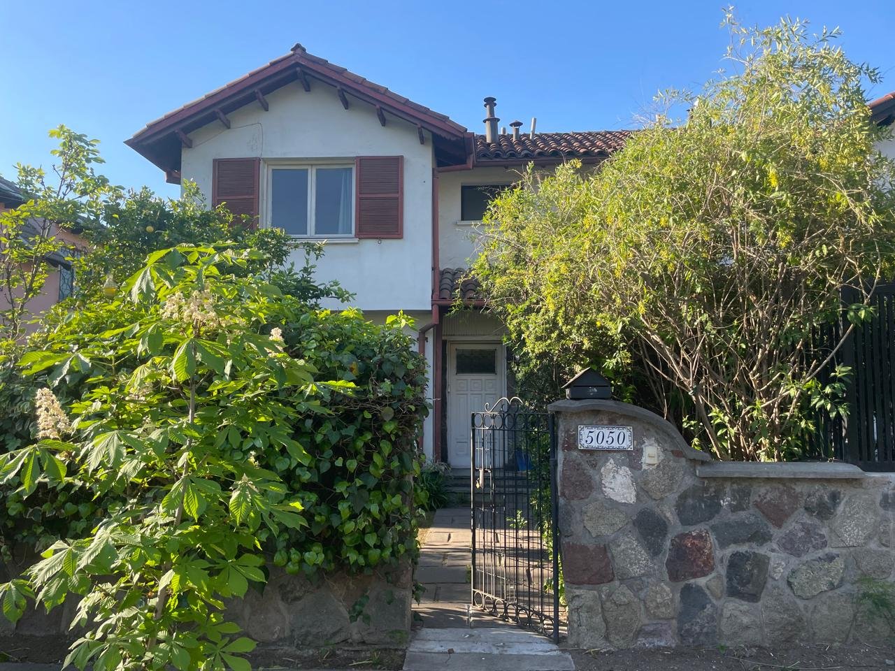 Excelente ubicación sector Bilbao con Vespucio cercana a locomoción, servicios, colegios, restaurantes, autopista Vespucio Casa ideal para remodelar. Descripción Primer piso Hall acceso, living y comedor juntos chimenea, estufa a parafina empotrada (extracción exterior) con salida a la terraza, cocina, logia y lavadero. Dormitorio principal en suite con una hermosa vista a la cordillera, mas dos dormitorios y un baño completo. Segundo piso: Tres dormitorios más un baño. Exterior: Cuenta con antejardín y estacionamiento, terraza trasera con parrilla, árboles. Otros: Pisos de parquet, gas natural.