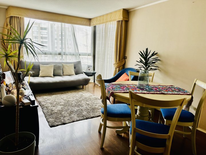 VENTA DEPARTAMENTO 2D-2B – EDIFICIO LAJA, ALMAGROS – SECTOR SUR Tu próximo hogar te espera en un sector en pleno desarrollo, con todo a mano:: gastronomía, centro de salud, supermercado, banco y farmacias, además de locales comerciales y locomoción a la puerta . Cercano a colegios Chañares y Universitario Antonio Rendic, Universidades, Departamento acogedor con 2 dormitorios y 2 baños completos. Hall de ingreso, cocina amoblada con logia en buenas condiciones.. El living-comedor se integra a una amplia terraza ideal para disfrutar y relajarte Dormitorio principal en suite con salida a la terraza; segundo dormitorio de buen tamaño, también conectado a la terraza . Terminaciones: living-comedor con piso flotante, baños y terraza en cerámica, dormitorios con alfombra. Incluye 1 bodega y 1 estacionamiento . Ubicado en piso 18, con 70 m² totales aprox y orientación oriente . Apto para crédito Condominio con conserjería 24/7 , gran parque interior para paseos de mascotas y juegos infantiles, piscina , salón de eventos , lavandería y estacionamientos de visita. Ideal para vivir cómodo y seguro, con excelentes conexiones y servicios. Valor de venta : 4850 UF Comisión: 2% del valor de venta. Trasandina Propiedades