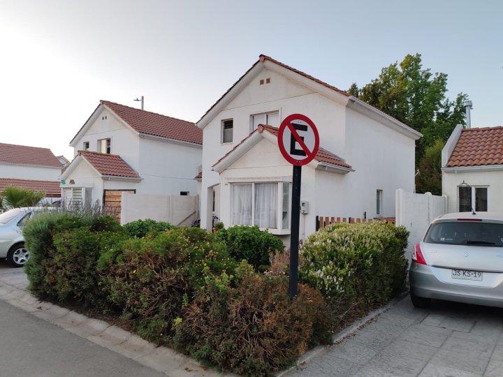 Se vende Hermosa casa en Cumbres de Nos, San Bernardo Vive en un exclusivo condominio de San Bernardo, rodeado de naturaleza y con excelente conectividad hacia el centro de la comuna y Santiago 🚇🚌. A pasos de servicios clave como supermercados, colegios, centros comerciales y ferias libres 🛒🏫, esta casa te ofrece la calidad de vida que estás buscando. Distribuida en 2 pisos 🏠, cuenta con 3 amplios dormitorios 🛏️, 3 baños 🚿 (incluye baño de servicio), sala de estar en el segundo piso 🎬, living y comedor separados 🛋️🍽️, y una cocina cerrada y amoblada lista para disfrutar 👩🍳. Suma una práctica logia 🧺, terraza ideal para compartir ☀️ y un amplio patio trasero para tus proyectos al aire libre 🌿. Además, tendrás estacionamiento propio 🚗 y la tranquilidad de vivir en condominio cerrado con acceso controlado 24/7 🛡️. Superficie total: 150 m², con 90 m² construidos 📐. Año de construcción: 2014 🏗️. Apto para crédito ✅ y pet friendly 🐾. Un hogar pensado para tu familia, con la ubicación y el entorno que necesitas. Agenda tu visita y resuelve tus dudas; te responderemos a la brevedad 📲.