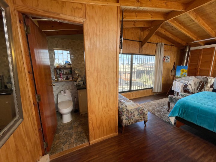 Venta Casa con Cabaña sector San Carlos en El Tabo, Litoral de los Poetas, Valparaíso. Oportunidad en un entorno residencial tranquilo y con ambiente veraniego. Propiedad en terreno de 220 m², a corta distancia de la playa y de la avenida principal. Vivienda de madera sobre radier con 160 m² construidos aprox., año 1990, diseñada para disfrutar en familia. Primer nivel con amplia sala de concepto abierto que integra living, comedor y cocina remodelada; pisos de cerámica y un baño. La calefacción central de la casa se resuelve con cocina a leña estratégicamente instalada, que climatiza ambos pisos. En el segundo nivel se ubica el dormitorio principal, de gran tamaño, con atractiva vista al mar. En total, la casa principal ofrece 3 dormitorios y 3 baños. Como valor agregado, cuenta con un departamento interior independiente con dormitorio, baño, cocina y bodega: ideal para renta anual o de temporada, o para recibir visitas. Exterior funcional: terraza techada, quincho, lavadero, bodega y estacionamiento para 2–3 vehículos. Requiere mantenciones menores, pero destaca por su amplitud, confort y potencial, ya sea como residencia permanente o inversión. Precio: UF 2.990. Coordina tu visita y proyecta tu vida en El Tabo.