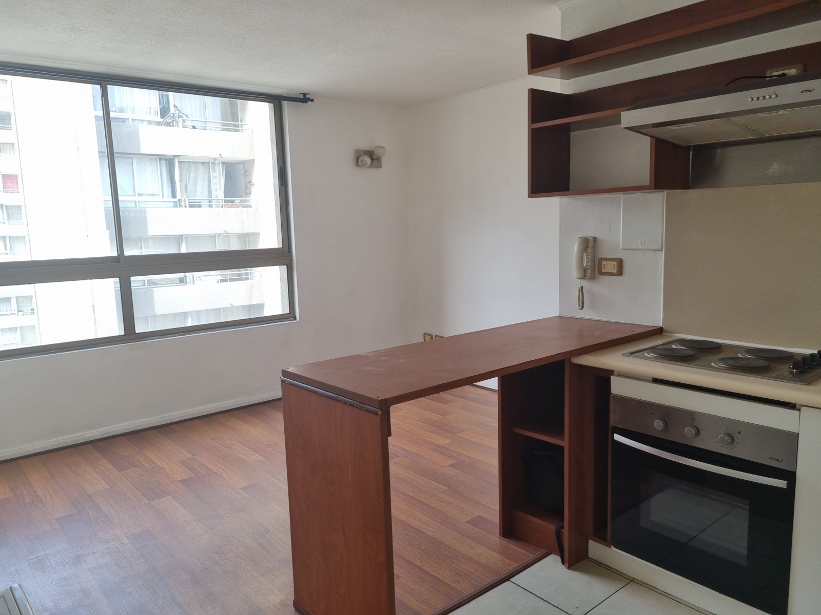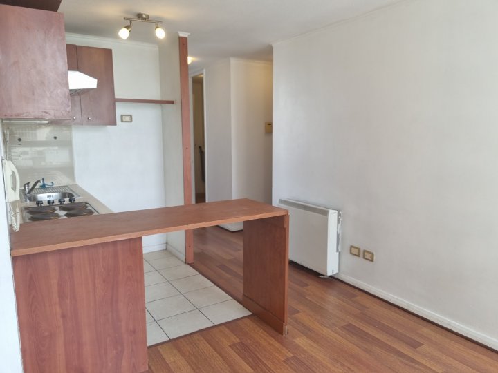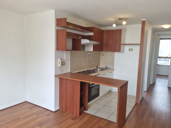 Atención Inversionistas. Departamento 46 m2 con excelente ubicación, San Martín / Rosas, a pasos de Estación Metro Santa Ana (Líneas 2 y 5). Excelente conectividad por autopista central, costanera norte, eje alameda. Locomoción, comercio, bancos, servicios públicos, colegios, institutos, iglesia, plaza, restaurantes, universidades, multitiendas, teatro Teletón, supermercados. Orientación Norte, Sur. 8º piso. Posee hall de acceso, cocina americana amoblada, amplio living-comedor, hall de distribución, 2 dormitorios con closets, baño completo. Posee estacionamiento, No tiene bodega. Piso flotante, termo eléctrico, conexión lavadora, encimera nueva de 4 platos, horno y campana eléctrica, plafones y barras dobles de cortinas incluidas, protector diferencial. Edificio año 2009, acceso control entrada/salida, conserjería las 24 hrs, circuito cerrado de TV, citófono, quinchos, gimnasio, portón eléctrico, piscina, salón de eventos, lavandería, estacionamientos de visitas, bicicletero, sala de juegos, terraza panorámica . Gastos Comunes app. $110.000 mensuales.