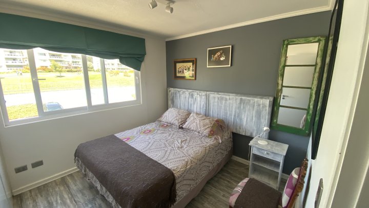 Estupendo y acogedor departamento ubicado en Condominio Barrio Golf en Santo Domingo, colindante al Club de Golf Rocas de Santo Domingo y muy cercano a las nuevas instalaciones de la Municipalidad. El condominio cuenta con un gran parque de casi 9 hectáreas, 3 piscinas, 3 salones, varias áreas de juegos infantiles, cancha de tenis, multicancha, un gran número de estacionamientos para visitas. En materia de seguridad; vigilancia y control de acceso las 24 horas. Programa: Hall, living - comedor, cocina americana, 3 dormitorios, el principal en suite, 2 baños y una amplia terraza con vista al Club de Golf Rocas de Santo Domingo, calefacción por radiadores y por convector AA de bajo consumo, Incluye 2 estacionamientos. Gastos comunes $ 140.000.- aprox. Contribuciones $ 79.000.-