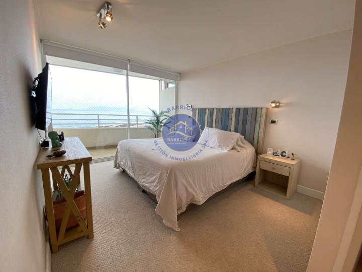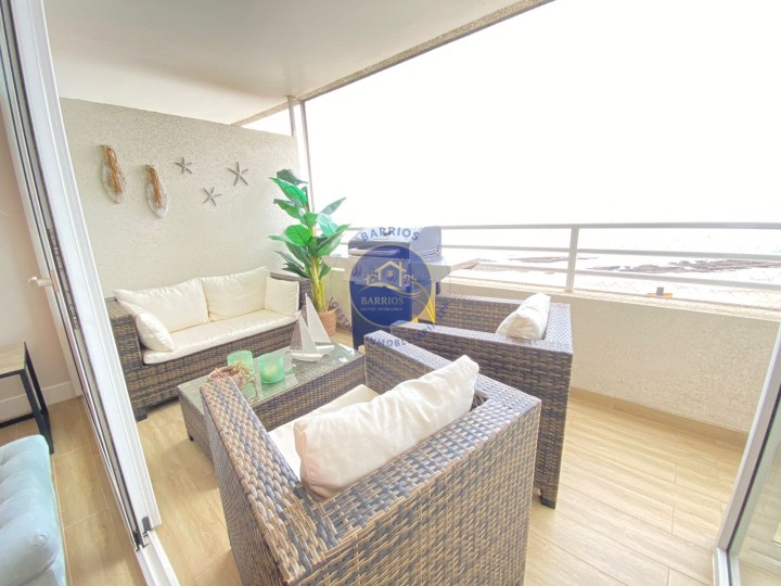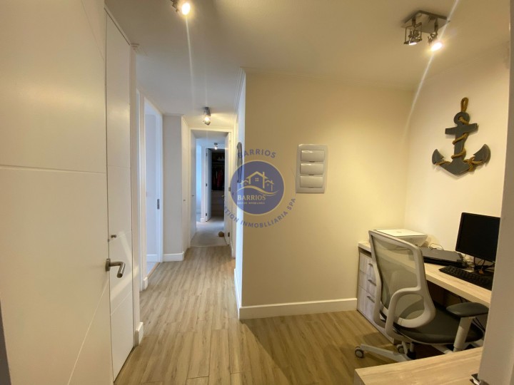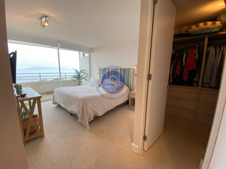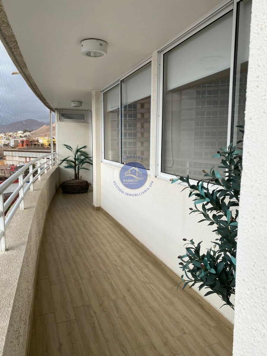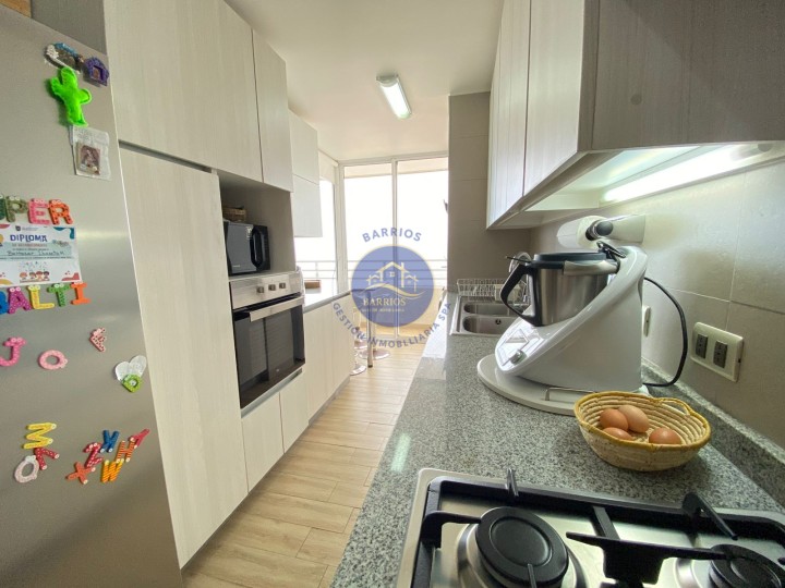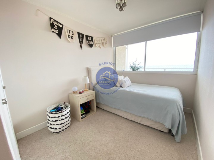 Código BGI: 353AY Departamento en venta – Sector Llacolén, Antofagasta Dirección: Av. Jaime Guzmán Errázuriz 4200, piso 7 (Edificio Playa Llacolén) Valor: UF 7.700 Departamento ubicado en el piso 7 del Edificio Playa Llacolén, en un barrio residencial consolidado, cercano a costanera, comercio y servicios. Destaca por su amplia terraza y vista al mar. Superficie: 99 m² interiores 23 m² de terraza 122 m² totales (según información proporcionada) Distribución interior: 3 habitaciones (principal en suite) 2 baños Cocina cerrada, amoblada y equipada Living comedor Hall de acceso Home office Logia y lavandería interior Comedor de diario Bodega Walking closet en dormitorio principal Balcón con vista al mar Equipamiento del condominio: Conserjería 24 horas Ascensores Piscina Gimnasio Lavandería Salón multiuso Sala de Juegos infantiles Estacionamientos de visitas Información adicional: Gastos comunes: $140.000 aprox. Contribuciones: $230.000 aprox. Comisión corretaje: 2% + IVA Código BGI: 353AY