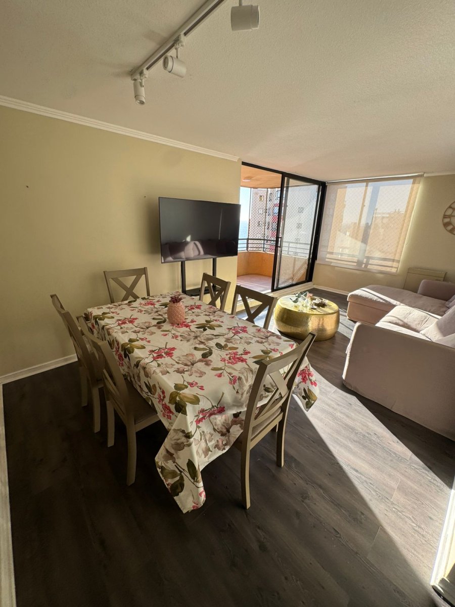 Vicenza Agente Inmobiliario vende exclusivo departamento con impresionante vista panorámica al mar en Reñaca. Una oportunidad única para vivir o invertir en una de las zonas más cotizadas de la costa, a solo pasos de la playa, centro comercial, bancos, supermercados y una variada oferta de restaurantes y cafés. Este hermoso departamento se ubica en el piso 17, destacando por su excelente luminosidad, amplitud y una vista despejada hacia la bahía de Valparaíso y Playa Reñaca, que se disfruta tanto desde el interior como desde su amplia terraza, perfecta para descansar o compartir momentos inolvidables frente al océano. La propiedad cuenta con aproximadamente 90 m², distribuidos en 3 dormitorios amplios y 2 baños completos. El dormitorio principal es en suite, de gran tamaño, con cómodo closet, baño de excelente metraje y ventanales que entregan abundante luz natural durante todo el día. El living comedor es espacioso, moderno y muy iluminado, con salida directa a la terraza, creando un ambiente ideal para disfrutar del estilo de vida junto al mar. La cocina se encuentra completamente equipada y dispone además de logia independiente, aportando funcionalidad y comodidad al hogar. El departamento se emplaza en un condominio seguro, con accesos controlados y completas áreas comunes pensadas para disfrutar todo el año, incluyendo piscina, gimnasio, sauna, sala de estar y sector de entretenciones, entregando una experiencia tipo resort en pleno Reñaca. Su ubicación es inmejorable, con locomoción a la puerta y cercanía a las mejores playas y atractivos del sector. Gastos comunes aproximados de $180.000 y contribuciones de $100.000. Ideal como primera vivienda, segunda residencia o inversión con alta demanda. Agenda tu visita hoy mismo con Vicenza Agente Inmobiliario y no dejes pasar esta oportunidad de vivir frente al mar