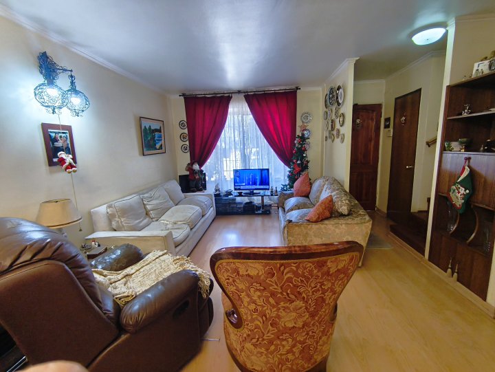A pasos del metro Simón Bolívar, se encuentra este pasaje de 14 casas, sector muy familiar. La casa se distribuye en dos plantas, con 3 dormitorios, 2 baños, cocina y comedor integrado con el living. Adelante espacio para estacionar un auto, patio con jardín trasero. La construcción es del año 1983. Gastos comunes $5.000