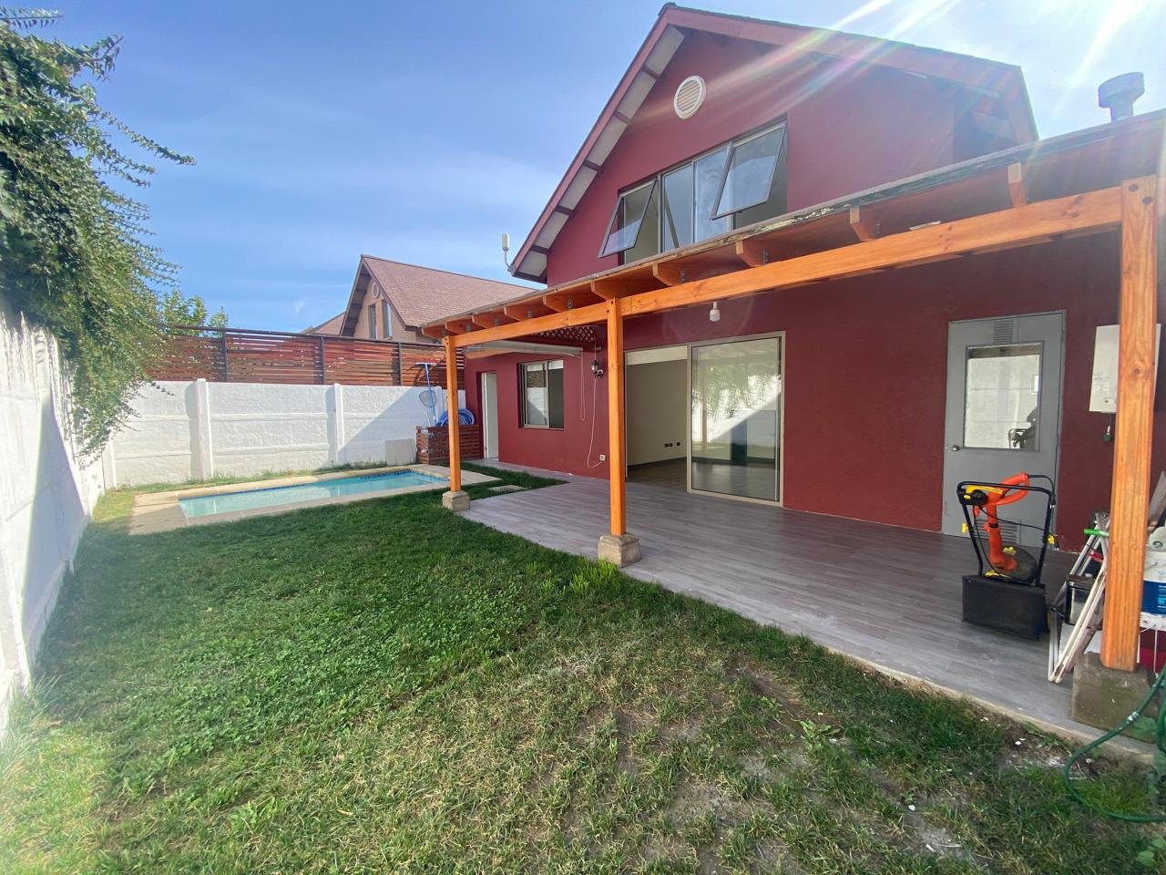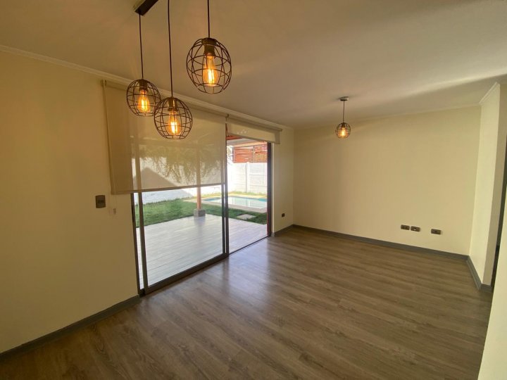 Esta encantadora casa cuenta con una ubicación privilegiada en un sector residencial ideal para familias, a pasos de áreas verdes y con una conexión inmejorable a las principales autopistas. Con 95 m² construidos sobre un terreno total de 229 m², este hogar diseñado con amor ofrece 4 dormitorios espaciosos y 2 baños. Disfrute de momentos inolvidables en living y comedor, ideales para compartir con amigos y familiares. La cocina independiente, completamente equipada.🍽️ Para días soleados, relájese en el patio y refrescarse en la piscina , mientras los niños disfrutan de los juegos infantiles cercanos. Además, cuenta con estacionamiento para dos vehículos y está rodeada de jardines que aportan tranquilidad y belleza al entorno. A pocos minutos de la estación de metro tren nos y importantes centros comerciales, supermercados, farmacias y colegios, esta propiedad en el Valle Los Cóndores ofrece la mezcla perfecta entre comodidad y accesibilidad.