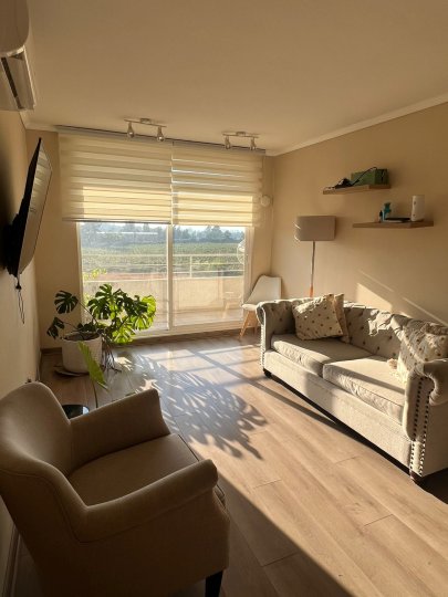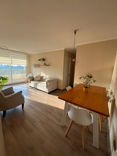 Departamento amplio en Condominio Terrados de Kennedy - Rancagua 4to Piso Torre A Disponibilidad a fin de marzo, principios abril 2026 (a convenir) Ubicación estratégica en el sector norte de Rancagua, con excelente conectividad y cerca de todo lo que necesitas: universidades, supermercados, parques y la Ruta 5 Sur para moverte fácilmente por la ciudad. Conserjería 24 hrs y accesos controlados, disfruta de áreas verdes, piscina, quinchos, salas multiuso y juegos infantiles. Características del departamento: - 2 dormitorios con closet (principal en suite) con aire acondicionado - 2 baños completos - Cocina amoblada y logia (sin cocina) - Living comedor con aire acondicionado - Terraza - 1 estacionamiento Arriendo 500.000 + GC (variable aprox. 80.000) Requisitos: Acreditación de renta y codeudor solidario (aval) Pagos: Mes de arriendo $500.00, Mes de Garantía $500.000, Comisión $294.985