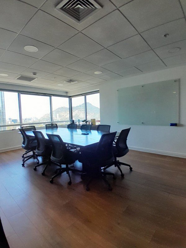 Calabi Propiedades & Asociados, presenta esta magnífica oficina, ubicada en una de las mejores zonas de Santiago, enclavada en pleno centro financiero, centros comerciales, Torre Costanera Center, metro Tobalaba, locomoción, clínicas, supermercados, restaurantes. UF 110 Características de la oficina Superficie aproximada: 193 m² Recepción independiente Área de trabajo en open space 2 salas de reuniones cerradas Espacio independiente para llamadas (tipo cabina) Zona de estar / comedor amplia y bien iluminada Kitchenette equipada 2 baños Climatización central Cielo americano con luminarias empotradas Piso flotante de alto estándar Excelente iluminación natural y vista despejada Oficina totalmente habilitada y lista para uso inmediato Edificio World Trade Center – Nueva Tajamar Edificio clase A Control de accesos Seguridad 24/7 Gasto Común $445.000 aprox. Áreas comunes bien mantenidas Incluye: 2 estacionamientos Adicional, optativo: 1 bodega (UF 4,5 mensuales) Comisión del 50% del valor de un arriendo Para agendar visita escribir a: [email protected] o al WhatssApp +56999497690 / +56994330660