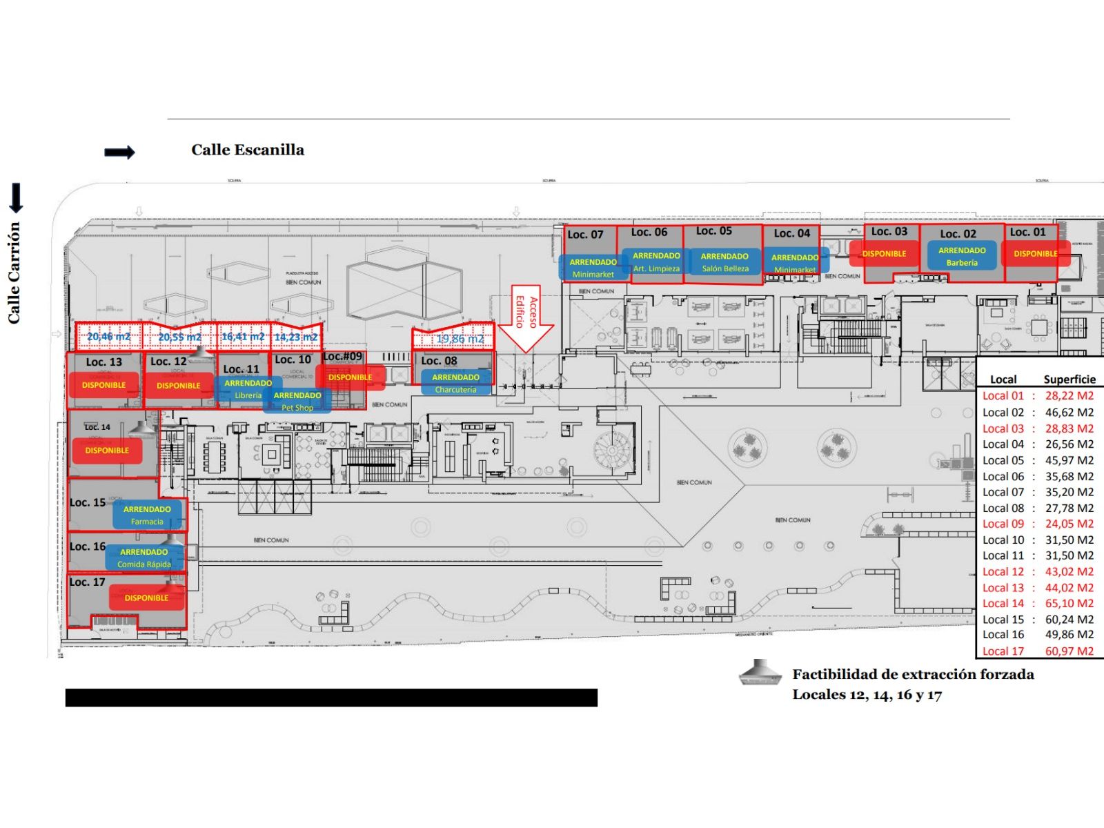 Locales comerciales a pasos del metro Hospitales L3. Cercano a, colegios, supermercado y variedad de locales, con un alto flujo peatonal y vehicular. Están ubicados en la Placa Comercial del edificio HOME INCLUSIVE, Escanilla N°1035, Independencia, edificio multifamily. Esta placa cuenta con un total de 17 locales comerciales de los cuales solo quedan disponibles 2: * Local 01 de 28,22 m2: 2 meses de gracia. Primeros 6 meses: 15,83 UF + IVA Mes 7 al 12: 17,24 UF + IVA Año 2 valor original: 28.22 UF + IVA Gastos Comunes: 1,13 UF, se reajustan un 5% anual. * Local 09 de 512,4 m2: 2 meses de gracia. Año 1: 51.24 UF + IVA Año 2: 175,31 UF + IVA (valor original) Gastos Comunes: 8,64 UF, se reajustan un 5% anual. Requisitos de Arriendo - Titular con sueldo líquido 2.5 veces el valor del arriendo y debe contar con un Aval. - Duración de contrato mínimo 3 años, todas las rentas se reajustan a contar del tercer año un 5% anual. - Contratación: 2 meses de Garantía + Comisión corretaje: 1 renta promedio + IVA o 2% del total de años de transacción con mínimo una renta promedio sin descuentos. Coordine su visita al +56 9 3933 7494 o al correo: [email protected]