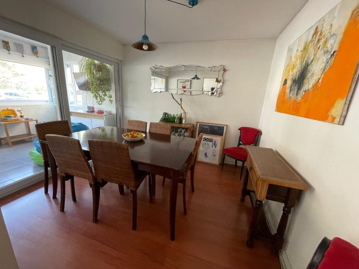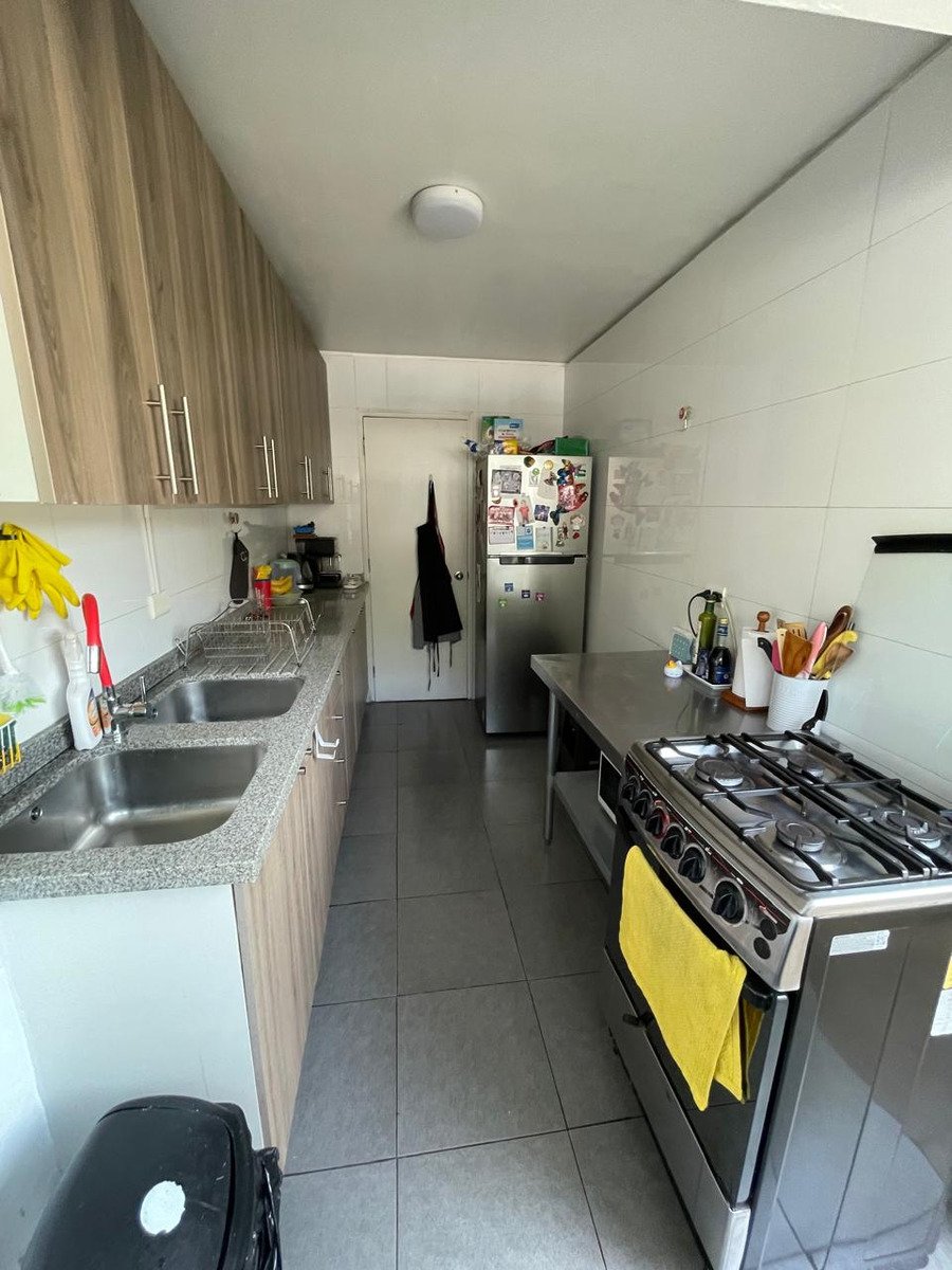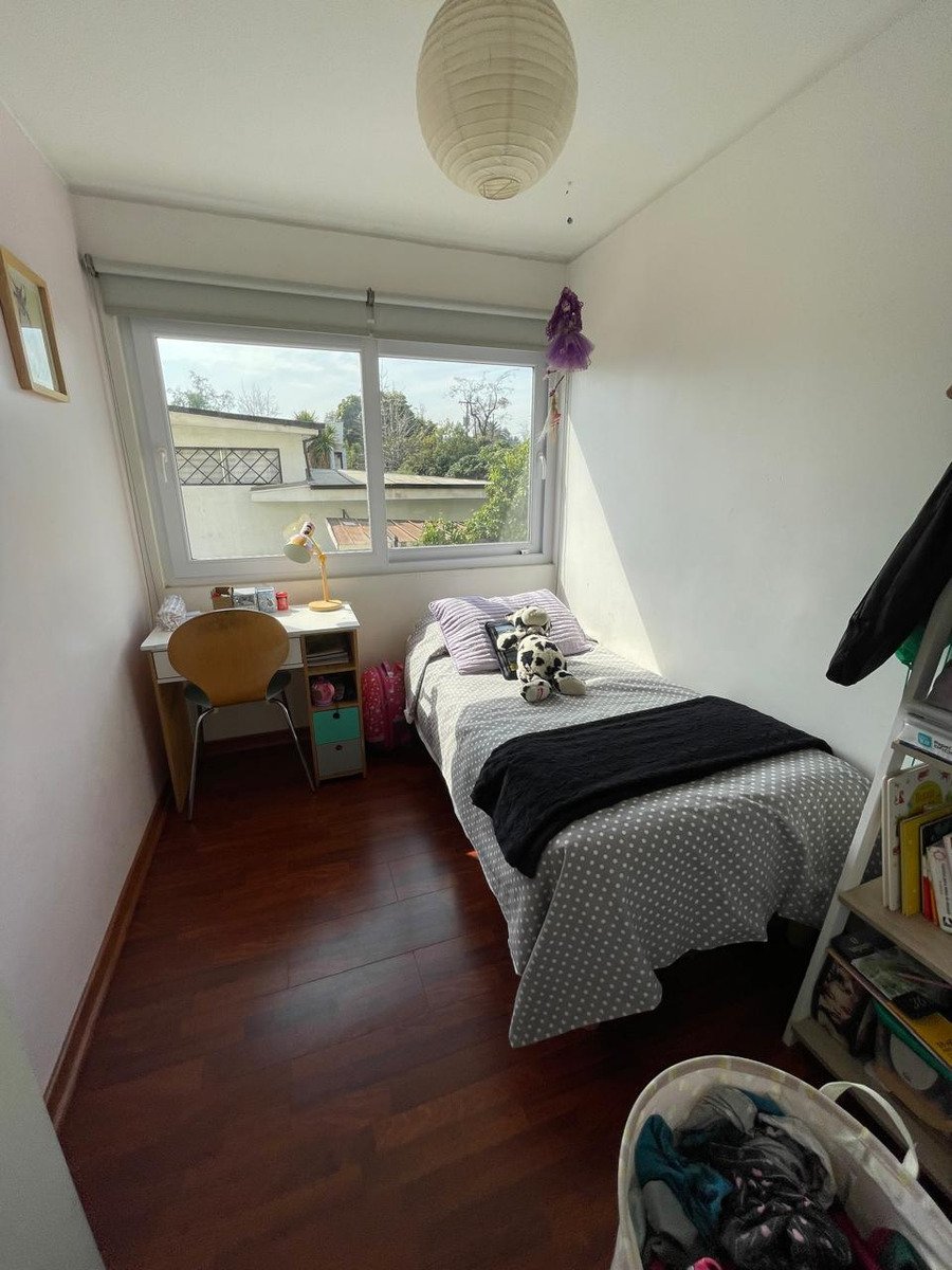 Departamento ubicado en Paul Harris con Abadía, Las Condes, con acceso a principales vías como Avenida Las Condes y autopista Kennedy. Su entorno ofrece proximidad a colegios, centros de salud, supermercados y recintos deportivos. El departamento cuenta con hall de entrada, living independiente del comedor y ambos ambientes con salida a una terraza cerrada. La cocina está equipada con cubiertas de granito y logia incorporada. Integra tres dormitorios, dos baños y servicios adicionales. El dormitorio principal tiene acceso a una terraza. El inmueble presenta piso flotante, ventanas termo panel, estacionamiento techado y una bodega. El edificio acepta mascotas. Los gastos comunes mensuales son de $150.000.