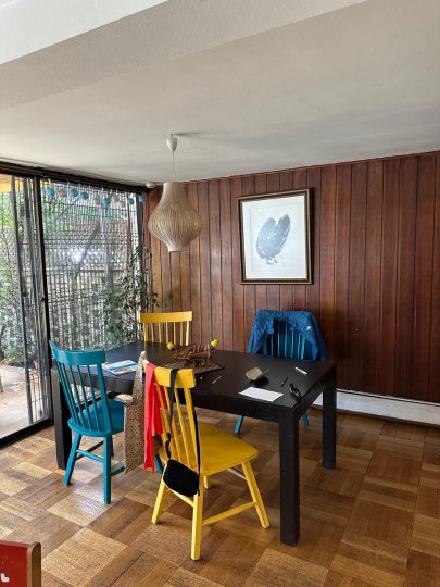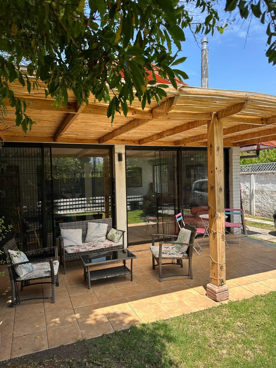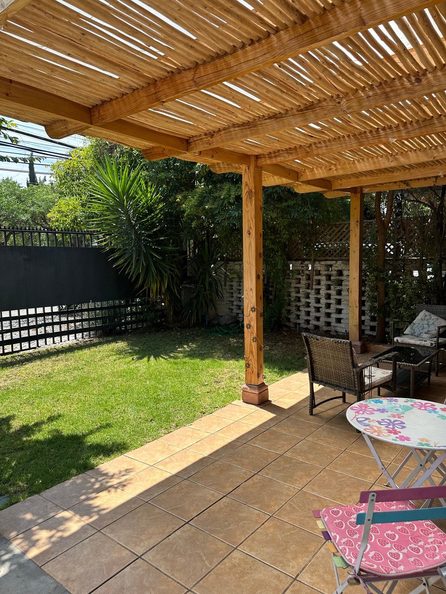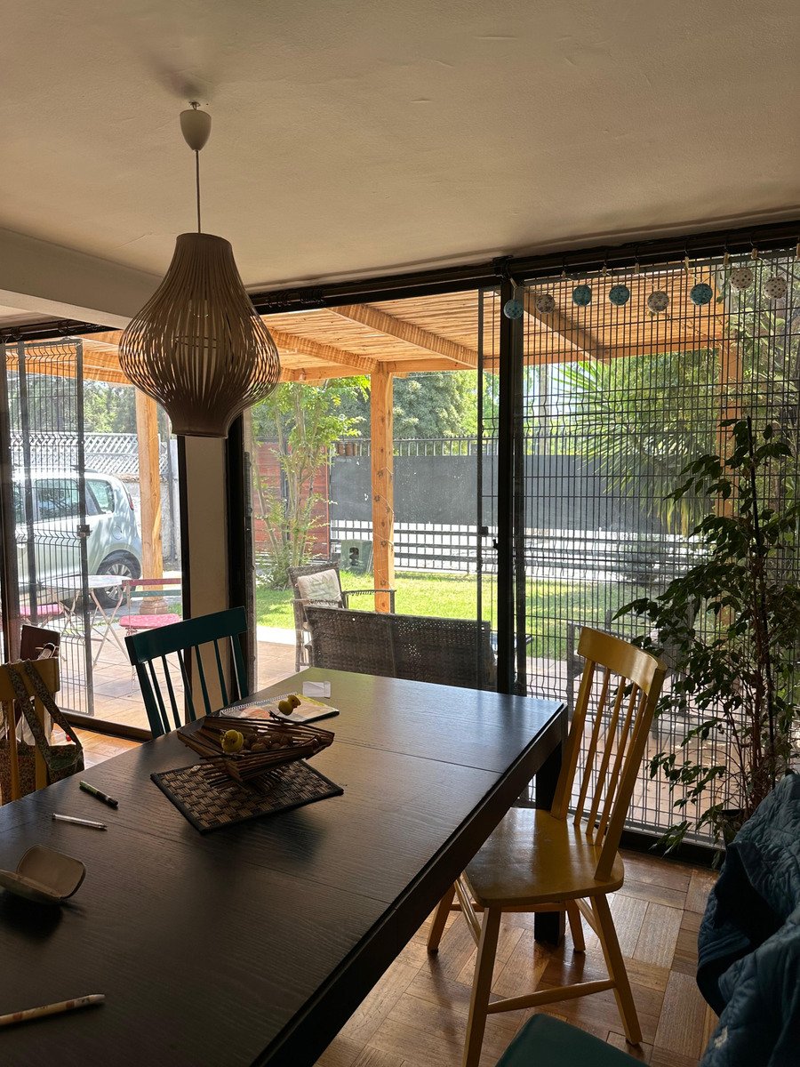 Excelente casa muy bien ubicada muy cerca de colegio Bradford, jardines infantiles, plazas, supermercados, locomoción colectiva, entre otros. 1er piso Hall entrada Living comedor juntos salida a terraza, jardín con riego automático cocina, loggia, servicios 3 Dormitorios y 2 baño, principal en suite 2do. piso: amplia sala estar La casa cuenta con piso de parqué, ventanas termopanel, y calefacción por radiadores.