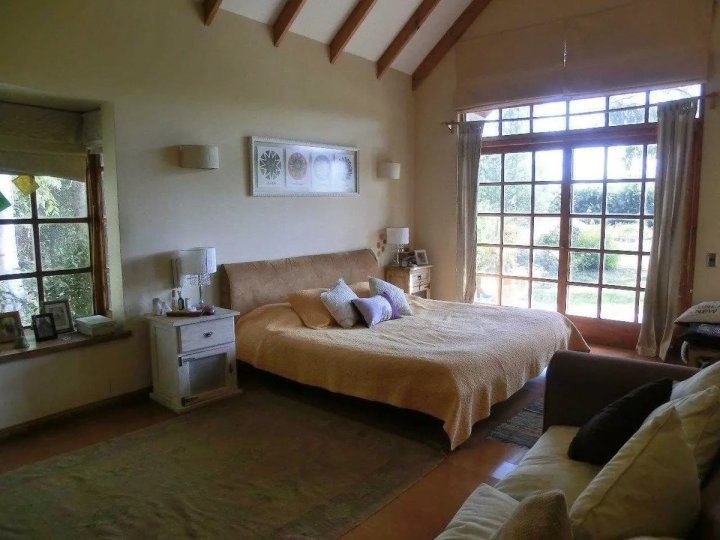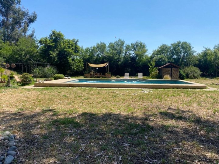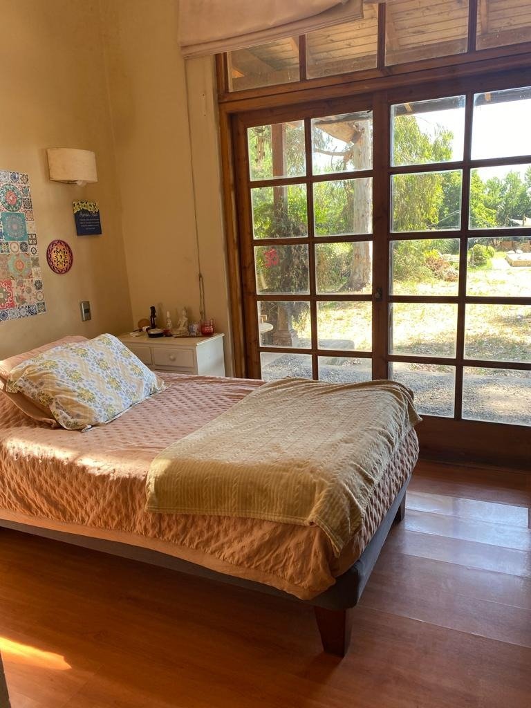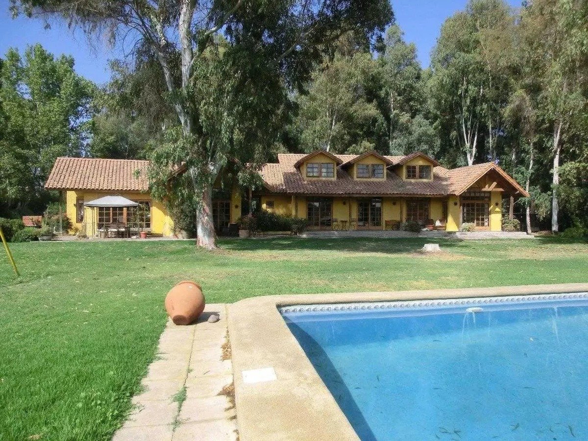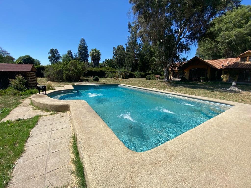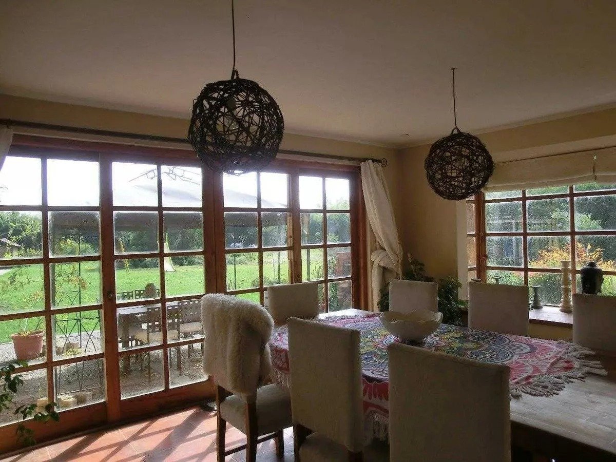 Maravillosa casa estilo chileno con lindo parque y en condominio. 7 minutos colegio Trebulco y 10 de colegio Carampangue. 355 m2 construidos/ 5.000 m2 de terreno aproximados. Muy luminosa, gran hall de acceso, lado derecho: amplio living con cielo alto , comedor separado y con desnivel, ventanas de madera, piso cerámico rústico. Gran cocina, con comedor de diario, loggia, dormitorio y baño de servicio y bodega. Lado izquierdo desde hall de acceso, baño de visita y sector dormitorios: 4 dormitorios (1 en suite, 2 estilo loft y 1 de 1 piso) y 2 baños, salita de estar y al fondo gran dormitorio principal en suite, con jacuzzi y walking closet. Calefacción central, 2 boscas (living y salita de estar), terraza a lo largo de toda la casa, jardín formado, gran piscina y canil, se riega y usa agua de pozo (gratis). Contribuciones $90.000 cada cuota