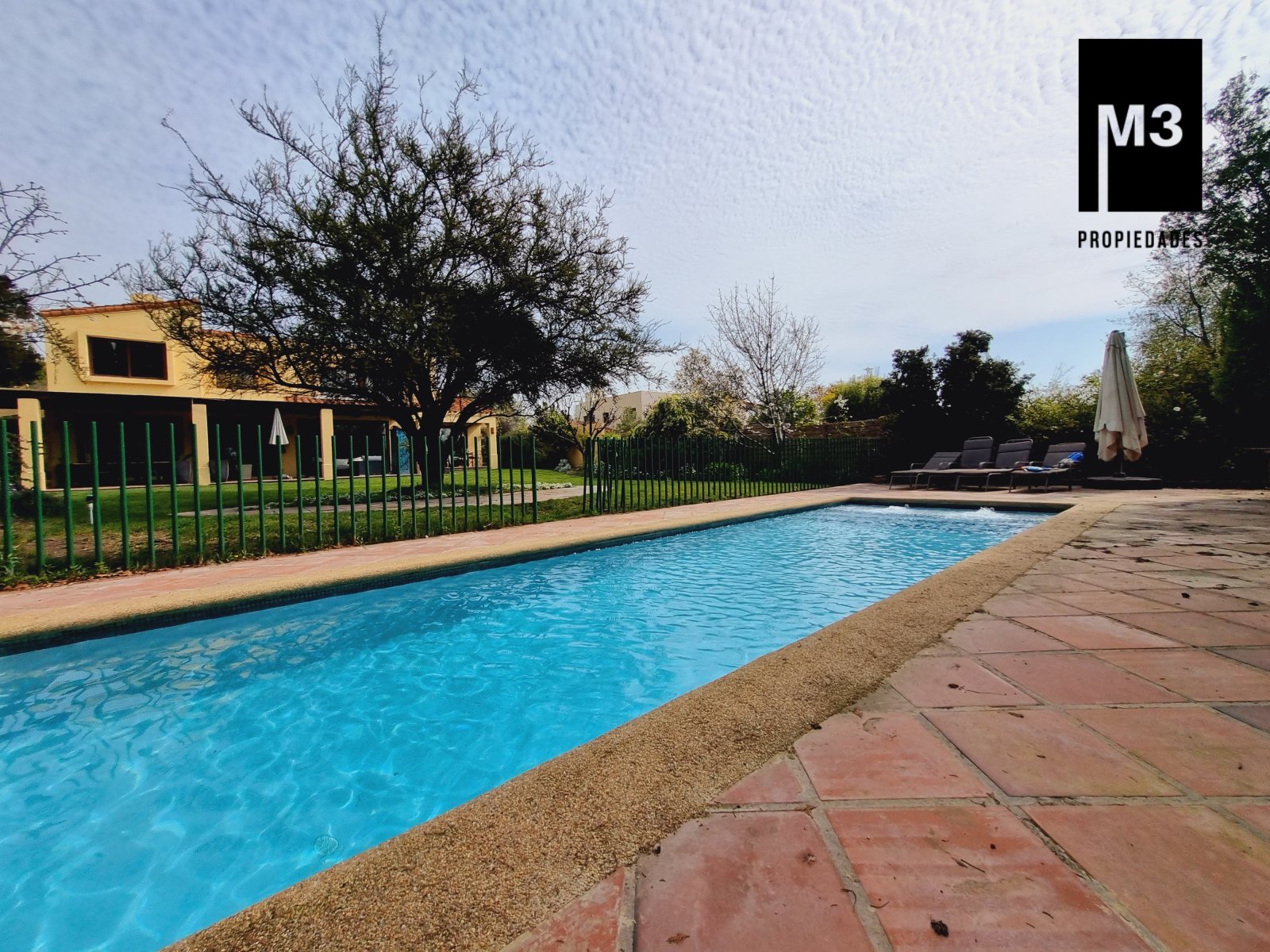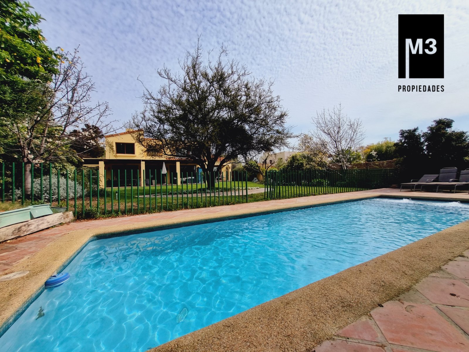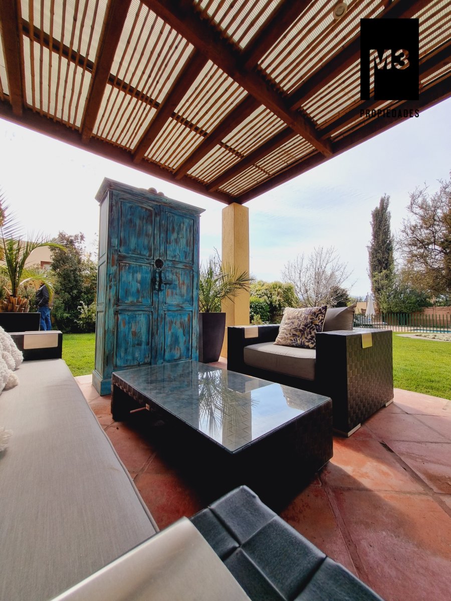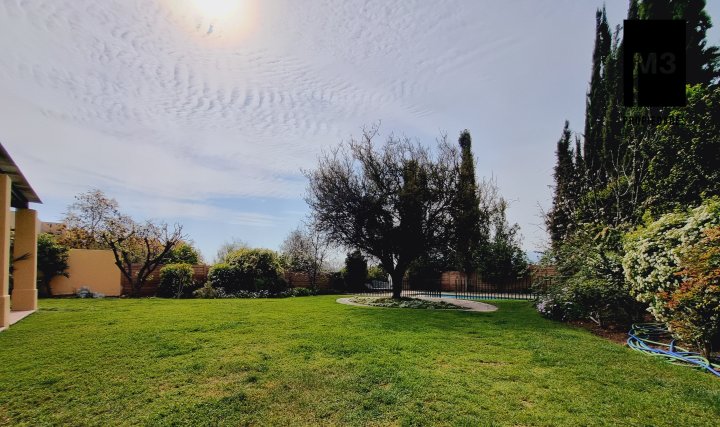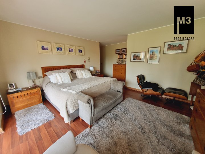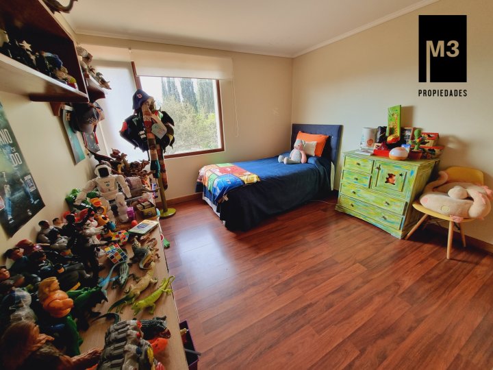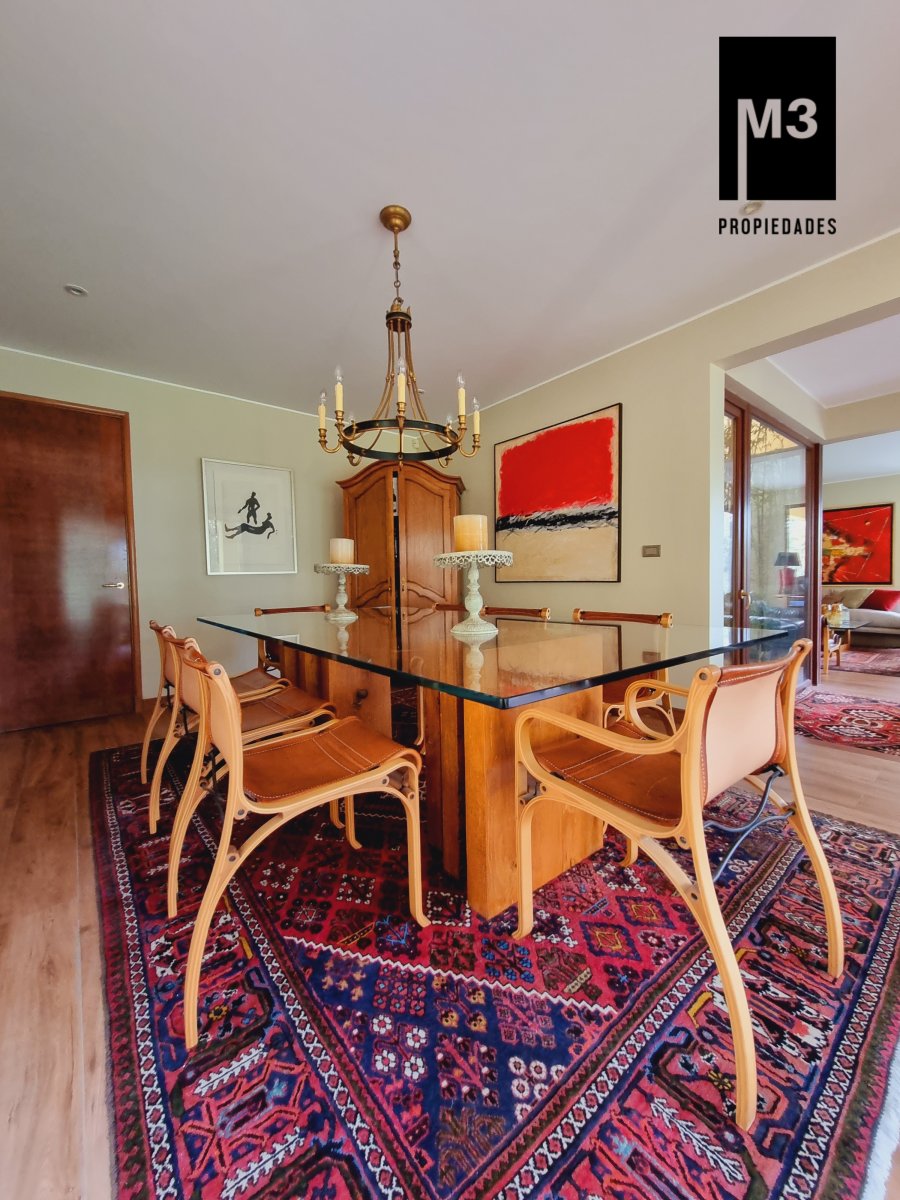 Se vende preciosa casa de 2 pisos en exclusivo sector de Chicureo, en Hacienda de Chicureo con hermosas áreas comunes y una excelente seguridad. Acceso directo a Camino Juan Pablo II, Radial Nororiente. Cercano a comercio, clínicas, servicios y colegios San José, San Anselmo, Verbo Divino, entre otros. GENERAL: - 323 m2 construidos / 1180 m2 terreno. - Calefacción central por losa radiante. - Aspiración central. - Ventanas de PVC folio madera con termopanel. - Dormitorios con píso flotante, - Piscina de 3,5 x 10 mts con reja. - Jardín formado con riego automático. - Estacionamiento para 4 vehículos. 2 de ellos techados. - Año construcción 2007. - Gastos Comunes: $300,000 - Contribuciones: $650,000 PISO 1: - Amplio hall de acceso con vista a patio interior. Piso de piedra pizarra, - Baño de visitas. - Living y comedor independientes con salida a una amplia terraza techada que recorre toda la casa. El piso es porcelanato simil madera. - Cocina amplia, con cubierta de granito, despensa de buen tamaño, comedor de diario, encimera a gas con 6 platillos, horno y campana eléctrica, y en general mucho mobiliario. - Lavadero. - Pieza y baño de servicio de buen tamaño. - Escritorio muy iluminado. - Dormitorio Principal en suite con 2 walking closet. Baño cuenta con ventilación natural, doble vanitorio, jacuzzi, shower door. Cuenta con su propia terraza. PISO 2 - 2 Salas de Estar separadas por la escalera. - 3 dormitorios, uno de los cuales es en suite y los otros 2 comparten un baño completo con ventilación natural. EQUIPAMIENTO: Cancha de golf y club house. Portería y accesos controlados con seguridad las 24 Hrs.