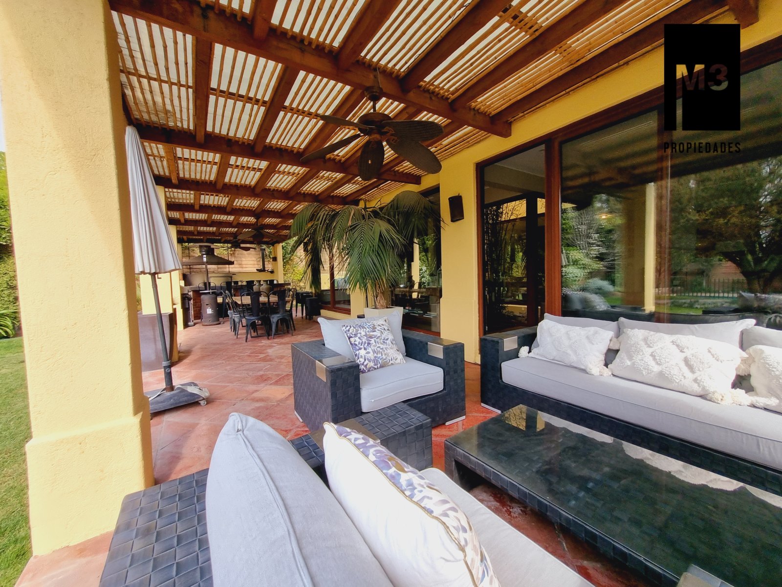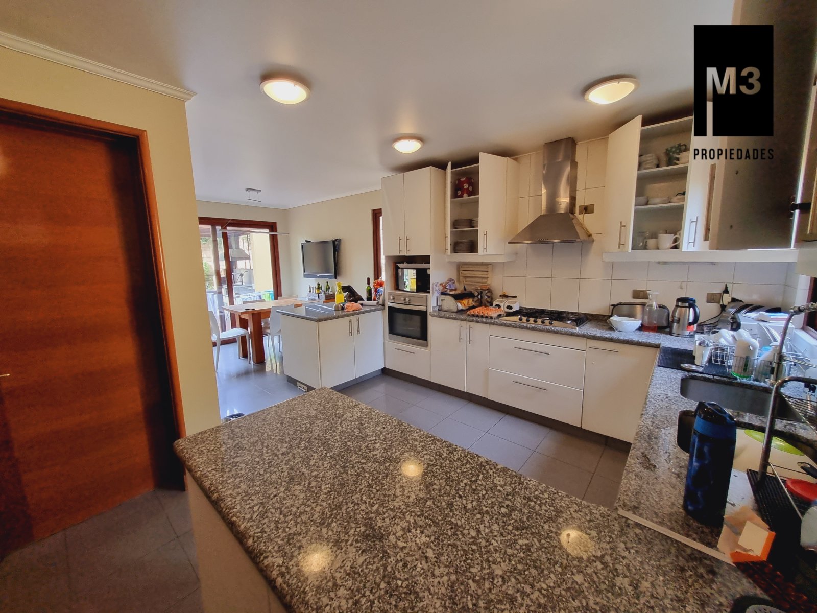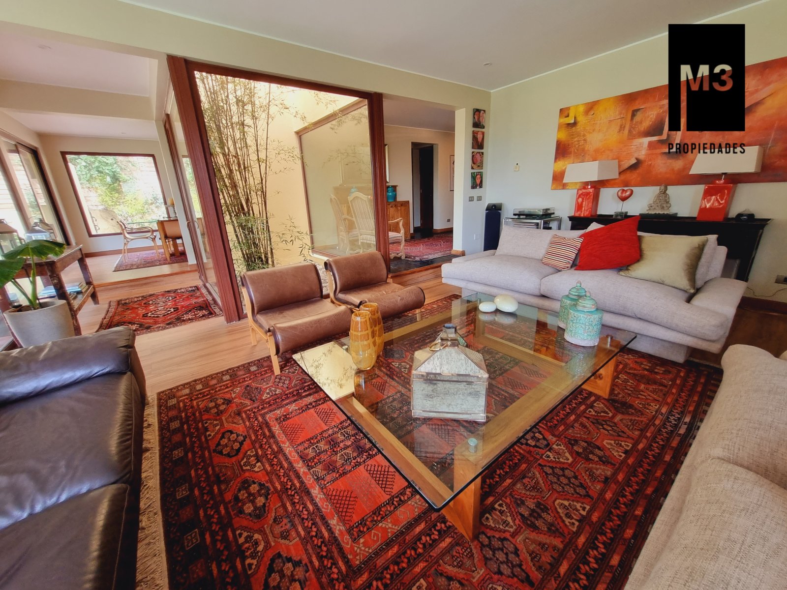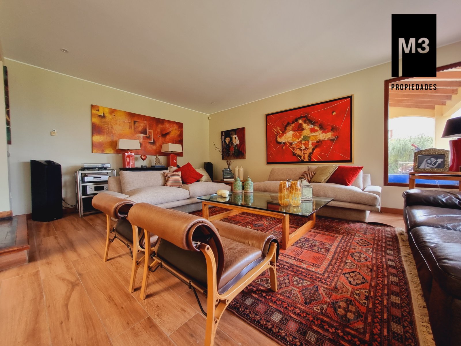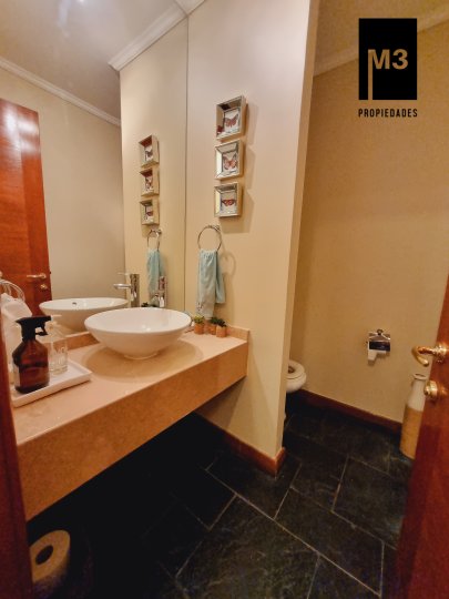 Se vende preciosa casa de 2 pisos en exclusivo sector de Chicureo, en Hacienda de Chicureo con hermosas áreas comunes y una excelente seguridad. Acceso directo a Camino Juan Pablo II, Radial Nororiente. Cercano a comercio, clínicas, servicios y colegios San José, San Anselmo, Verbo Divino, entre otros. GENERAL: - 323 m2 construidos / 1180 m2 terreno. - Calefacción central por losa radiante. - Aspiración central. - Ventanas de PVC folio madera con termopanel. - Dormitorios con píso flotante, - Piscina de 3,5 x 10 mts con reja. - Jardín formado con riego automático. - Estacionamiento para 4 vehículos. 2 de ellos techados. - Año construcción 2007. - Gastos Comunes: $300,000 - Contribuciones: $650,000 PISO 1: - Amplio hall de acceso con vista a patio interior. Piso de piedra pizarra, - Baño de visitas. - Living y comedor independientes con salida a una amplia terraza techada que recorre toda la casa. El piso es porcelanato simil madera. - Cocina amplia, con cubierta de granito, despensa de buen tamaño, comedor de diario, encimera a gas con 6 platillos, horno y campana eléctrica, y en general mucho mobiliario. - Lavadero. - Pieza y baño de servicio de buen tamaño. - Escritorio muy iluminado. - Dormitorio Principal en suite con 2 walking closet. Baño cuenta con ventilación natural, doble vanitorio, jacuzzi, shower door. Cuenta con su propia terraza. PISO 2 - 2 Salas de Estar separadas por la escalera. - 3 dormitorios, uno de los cuales es en suite y los otros 2 comparten un baño completo con ventilación natural. EQUIPAMIENTO: Cancha de golf y club house. Portería y accesos controlados con seguridad las 24 Hrs.