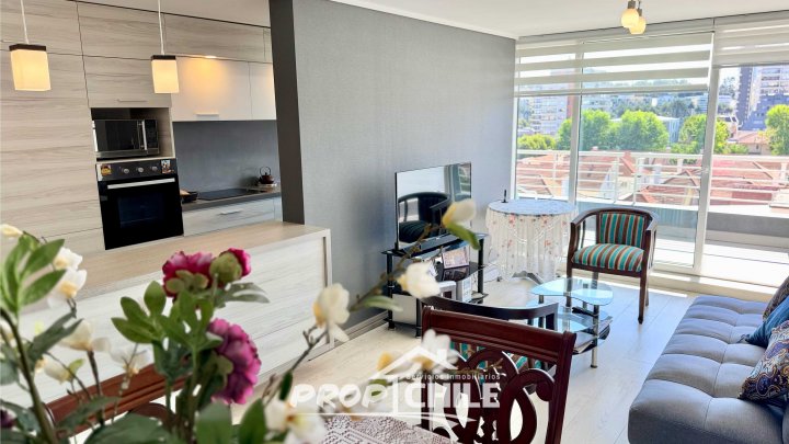 En ARRIENDO Departamento 3D+2B, Ponientes, Viña del Mar. PROPChile® Gestión Inmobiliaria ARRIENDA moderno departamento en excelentes condiciones y en una ubicación privilegiada. Consta de 3 dormitorios y 2 baño (1 en suite), ofrece el equilibrio perfecto entre diseño contemporáneo, eficiencia energética y una ubicación estratégica a pasos de todo lo que necesitas. Cuenta además con cocina americana muy funcional, con excelentes terminaciones y artefactos eléctricos como refrigerador empotrados, living/comedor amplio y balcón. Ademas incluye estacionamiento en subsuelo. CARACTERÍSTICAS PRINCIPALES: * Superficie: 84 m² optimizados para el confort. * Distribución: 3 Dormitorios amplios y 2 Baños (principal en suite). * Espacios Integrados: Luminoso Living-Comedor con salida directa a balcón. * Cocina Moderna: Estilo americana, equipada y funcional. * Eficiencia: Sistema 100% eléctrico (sin gas) y ventanas de Termopanel que aseguran aislamiento térmico y acústico superior. * Estacionamiento: Incluye 1 estacionamiento cubierto. DETALLES QUE MARCAN LA DIFERENCIA: Ubicado en un piso elevado con orientación Poniente, el departamento destaca por su excelente iluminación natural. Cuenta con pisos flotantes en áreas sociales, conexión para lavadora y climatización eléctrica. El edificio, construido en 2018, ofrece una infraestructura de primer nivel: * Seguridad 24/7 y accesibilidad (Acceso para discapacitados). * 2 Ascensores. * Amenidades: Sala multiuso, lavandería y gimnasio equipado. UBICACIÓN Y ENTORNO: Vivir en el sector de los Ponientes en Viña del Mar, te da acceso a una ubicación ideal a pasos de todo. Te permite disfrutar de la mejor gastronomía, playas, casino, plazas y parques, colegios, centros comerciales, supermercados, espacios turísticos/culturales y todo el comercio y servicios de la Ciudad Jardín, manteniendo la tranquilidad de un barrio consolidado y seguro. VALORES: Arriendo: $750.000/mes Gastos comunes aproximados aparte: $280.000
