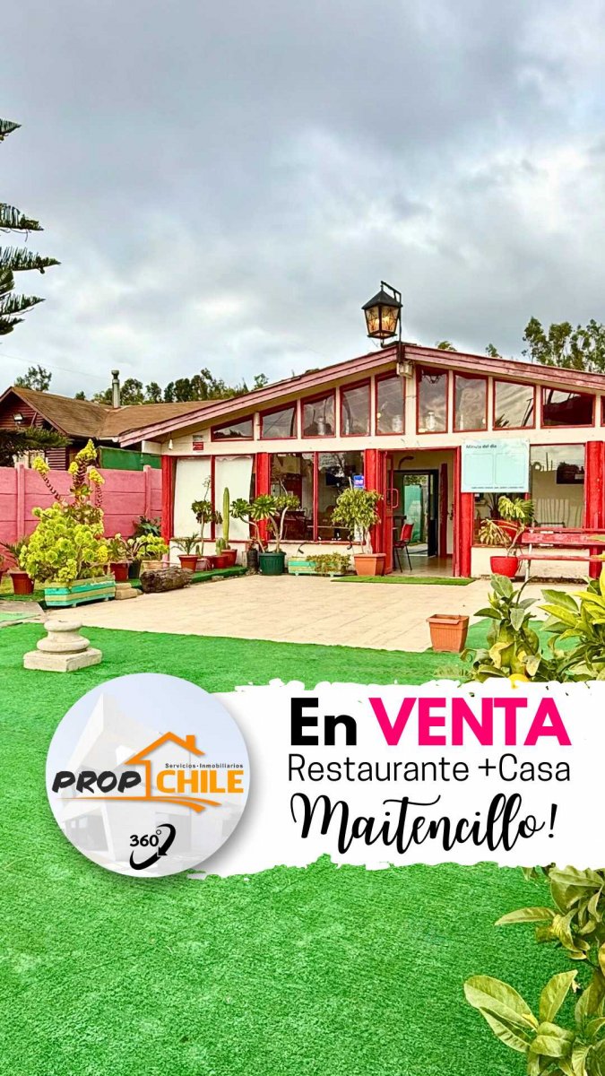 EN VENTA – Restaurante y Casa en Maitencillo, Puchuncaví PROPChile® Gestión Inmobiliaria presenta esta singular oportunidad: una propiedad de 600 m² de terreno y aproximadamente 280 m² construidos, ubicada sobre una de las principales vías de acceso a Maitencillo, a solo 4 km de sus playas más concurridas y a 43 km de Viña del Mar. Un entorno rural y natural que combina visibilidad estratégica, vida familiar y un entorno privilegiado. Dos construcciones que marcan la diferencia: Local comercial (restaurante): al ingresar a la propiedad se encuentra este espacio de excelente exposición desde la calle altamente transitada. Cuenta con amplia terraza exterior para comedor al aire libre, salón comedor interior, bar equipado (con lava copas), cocina, 2 baños de clientes, baño de personal y bodega. Cuenta con la resolución sanitaria correspondiente. Casa habitación: en la parte posterior, rodeada de jardines. Posee 4 dormitorios, 2 baños, living-comedor en dos niveles y cocina americana. Interiores amplios e iluminados, perfectos para la vida diaria y el descanso. Entorno y plus turísticos: Maitencillo se destaca por su combinación perfecta de campo y playa, rodeado de pinos y eucaliptos, con arenas blancas y aguas que lo hacen cautivador para familias y visitantes. Entre sus playas más valoradas están El Abanico (surf), Aguas Blancas (parapente), Los Pocitos, Playa Chica, Caleta y Chungungo, muy atractivas tanto para deportes como para relajarse. A corta distancia, se puede acceder a lugares como Zapallar o Cachagua, reconocidos por su belleza costera, buceo, kayaking, caminatas y entornos exclusivos. Resumen de características principales: Superficie terreno: 600 m² Superficie construida: ˜ 280 m² Restaurante con terraza, bar, cocina certificada, baños, bodega Casa con 4 dormitorios, 2 baños, living-comedor en dos niveles, cocina americana Entorno natural y rural, inserto en la naturaleza, con gran visibilidad comercial A solo 4 km de playas y 43 km de Viña