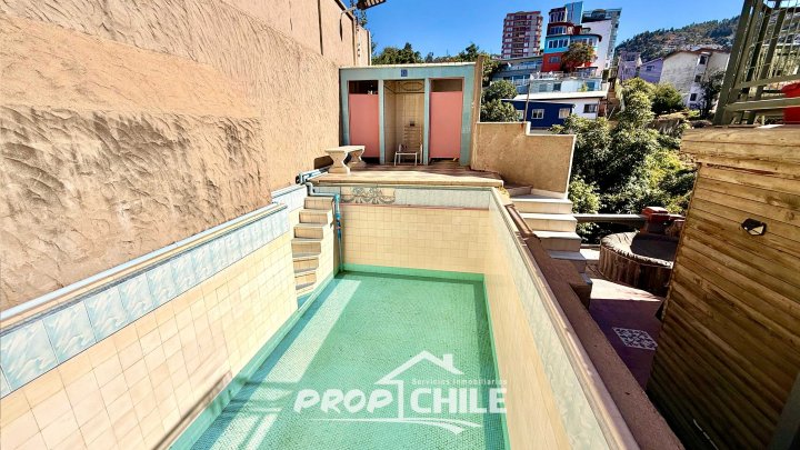 Hotel Boutique + Spa en VENTA, Valparaíso. PROPChile® Gestión Inmobiliaria VENDE hermoso hotel boutique + spa con vista al mar en el cerro Bellavista, Valparaíso. Construido en 1935 por el renombrado arquitecto Don Sebastián Collado Mauri, conocido por obras como el Teatro Mauri y la casa La Sebastiana (posteriormente terminada por Pablo Neruda), este castillo original de reminiscencias ibéricas, de estilo neo medieval con sus torreones, rejas de hierro labradas y almenas en una ladera del cerro Bellavista, con todos los adelantos de la época y la decoración refinada de fines de la década del siglo 20. La propiedad se encuentra en un terreno de 1,050 m2 y cuenta con aproximadamente 650 m2 de infraestructura. Dispone de 11 habitaciones distribuidas en cuatro pisos, 10 baños, un amplio living con una hermosa chimenea de época decorada con baldosas pintadas a mano y traídas a Chile en 1935, comedor, cómoda cocina independiente, terraza panorámica, escalera ornamentada, oficina, logia, bodegas y mucho más. En el exterior, se encuentra un bello patio de baldosas con fuente de agua, terrazas, piscina, spa con sauna, salas de masaje y de baño, un exuberante jardín con parrones, árboles frutales, pozo, mirador y zona de parrillas para asados, todo conectado por senderos. Además, incluye estacionamiento techado para 2 o 3 vehículos. La ubicación es privilegiada, en un sector muy turístico de Valparaíso con excelente conectividad al centro de la ciudad y vistas impresionantes de toda la Bahía. ¿Interesado en invertir en una propiedad de esta magnitud? Contáctanos y coordinemos una visita. ¡Te esperamos! Dato: Comprar una propiedad de Collado Mauri no es solo adquirir una propiedad, es comprar una parte del "ADN de Valparaíso". Casi no existen propiedades de este autor en el mercado privado, lo que hace que sea una oportunidad!