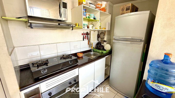 PROPChile® Gestión Inmobiliaria VENDE departamento en la calle San Diego, Santiago centro. En sus 40 m2 de superficie cuenta con Living comedor, cocina americana, balcón, dormitorio principal, dormitorio secundario y baño general. Todos los espacios muy iluminados y con una hermosa vista elevada a la ciudad. En adición, incluye bodega y estacionamiento. El condominio cuenta con equipamiento en áreas comunes como gimnasio, sala multiuso, juegos para niños, entre otros. En cuanto a la seguridad, posee acceso controlado 24 horas al día y portón eléctrico vehicular. La ubicación es inmejorable, posee transporte público a la puerta, y se encuentra cercano a todos los servicios y comercios que brinda el centro de la ciudad. Ven a conocerlo, contáctanos! Esta es otra propiedad de PROPChile® Gestión Inmobiliaria.